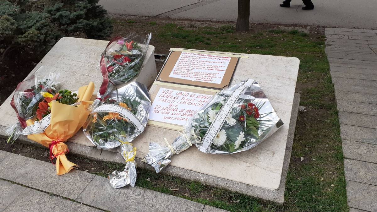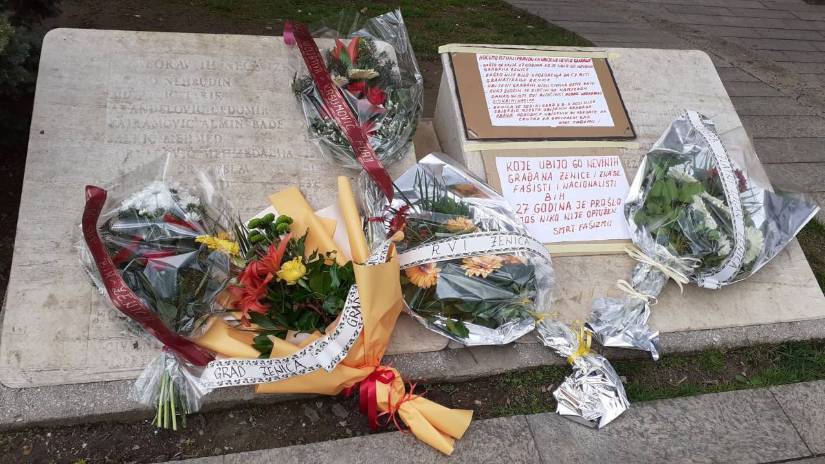 Slijedilo je polaganje cvijeća na veoma dotrajalom spomeniku civilnim žrtvama rata, a cvijeće su položili predstavnici nekoliko udruženja i političkih partija: Porodice šehida, ratni vojni invalidi, Grad Zenica, zenička inicijativa KF i SDP Zenica.