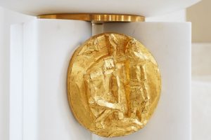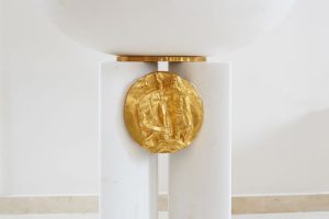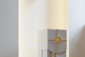 Elementi su posebno dizajnirani i karakterizira ih dvojnost materijala, bijeli kamen predstavlja trajnost i čistoću, a zlato predstavlja plemenitost i uzvišenost. Sastoje se iz četverodijelnog postamenta, oblikovani prema različitim namjenama i simbolikama, u jednostavnom izrazu, oslobođeni svega suvišnog, stvarajući atmosferu prozračnosti, otmjenosti i dostojanstva.