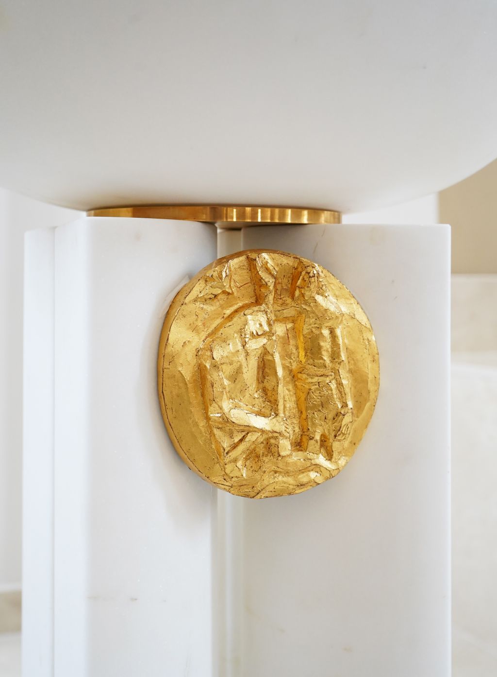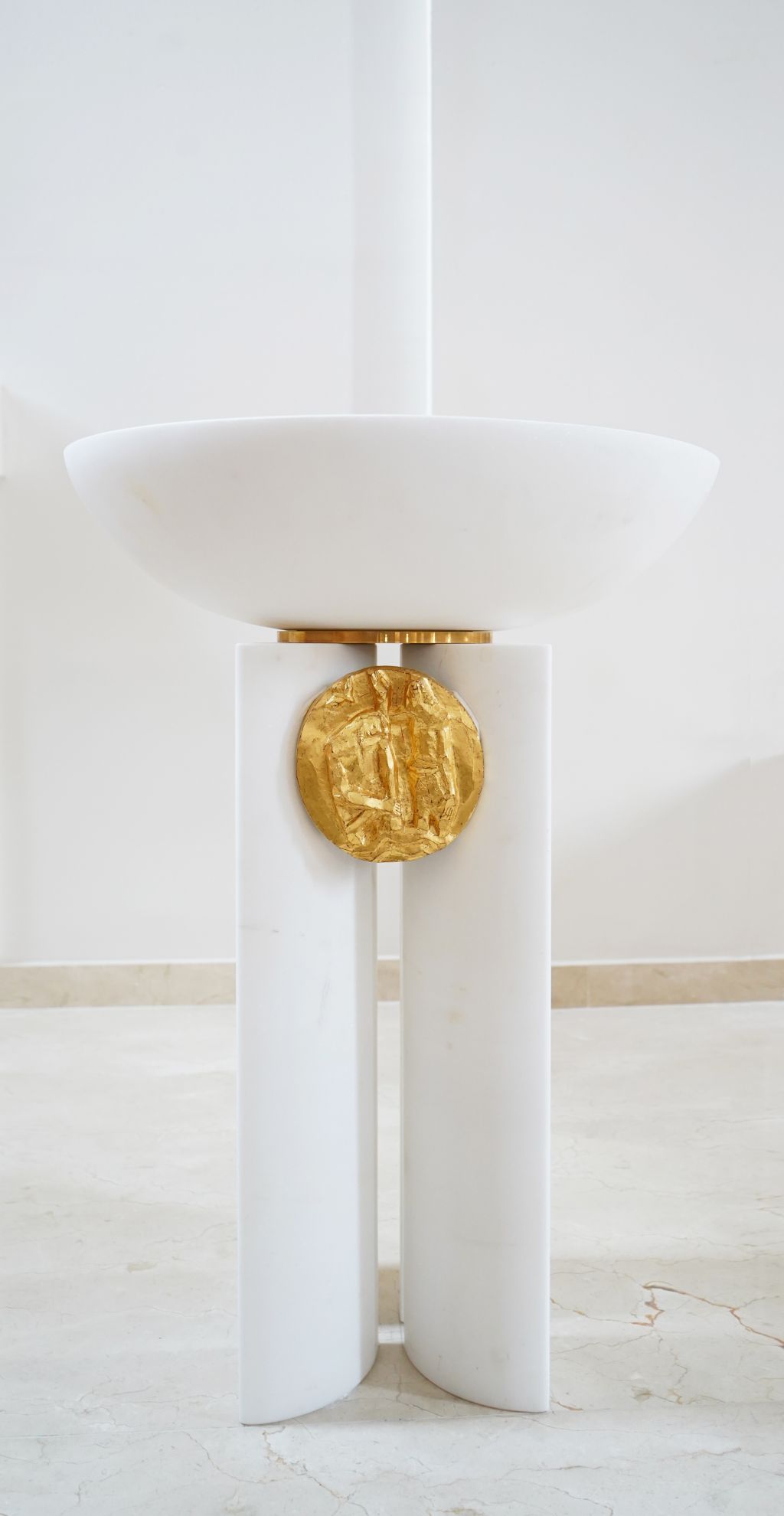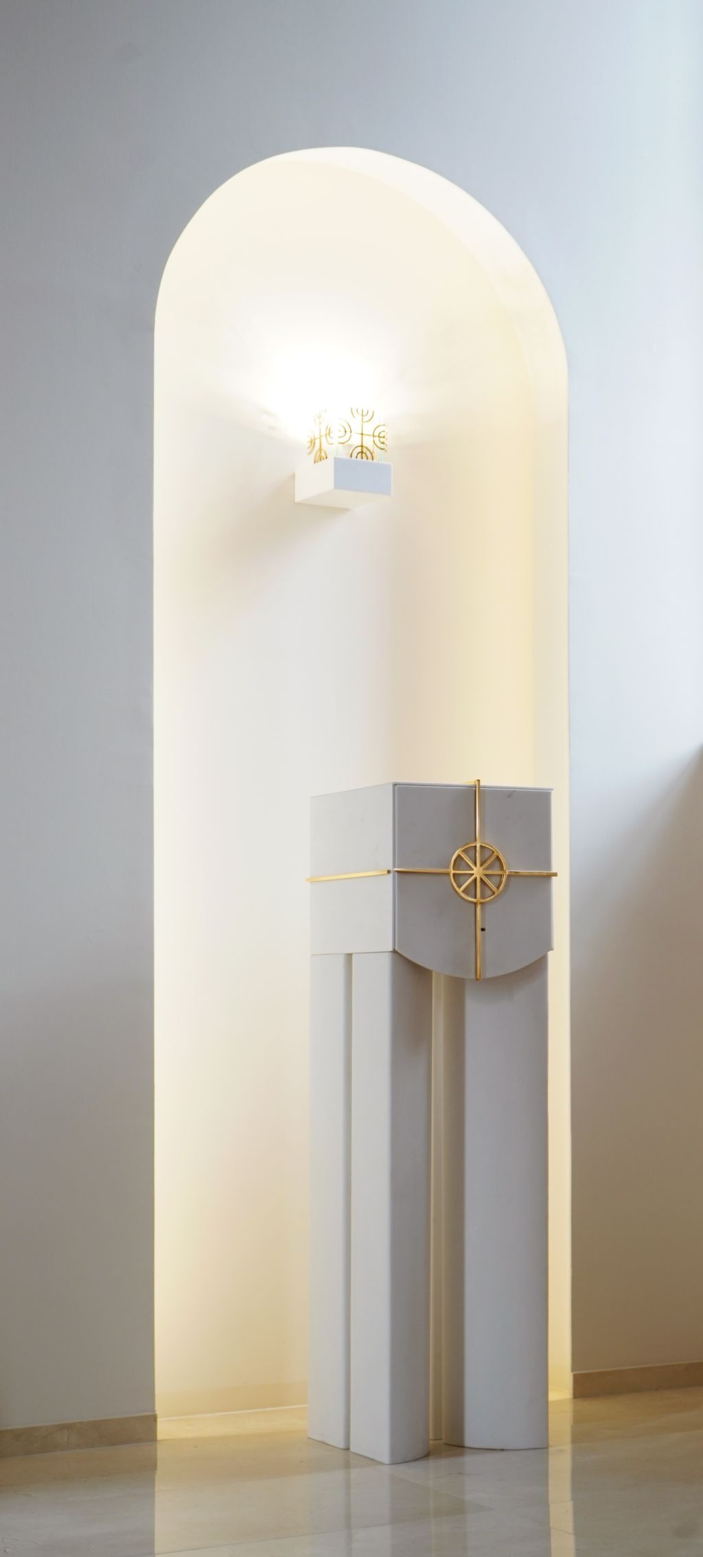 Elementi su posebno dizajnirani i karakterizira ih dvojnost materijala, bijeli kamen predstavlja trajnost i čistoću, a zlato predstavlja plemenitost i uzvišenost. Sastoje se iz četverodijelnog postamenta, oblikovani prema različitim namjenama i simbolikama, u jednostavnom izrazu, oslobođeni svega suvišnog, stvarajući atmosferu prozračnosti, otmjenosti i dostojanstva.