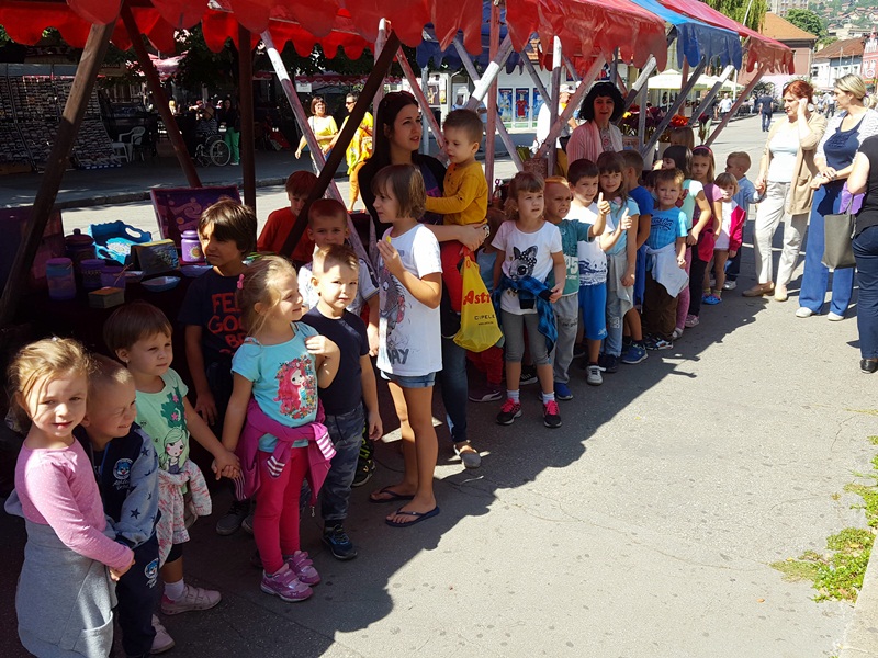 Svoj skromni doprinos ovoj koloniji dali su i oni najmlađi, te su tako mališani tri zenička obdaništa posjetili sedmi Art market, a ujedno se i družili sa izlagačima.