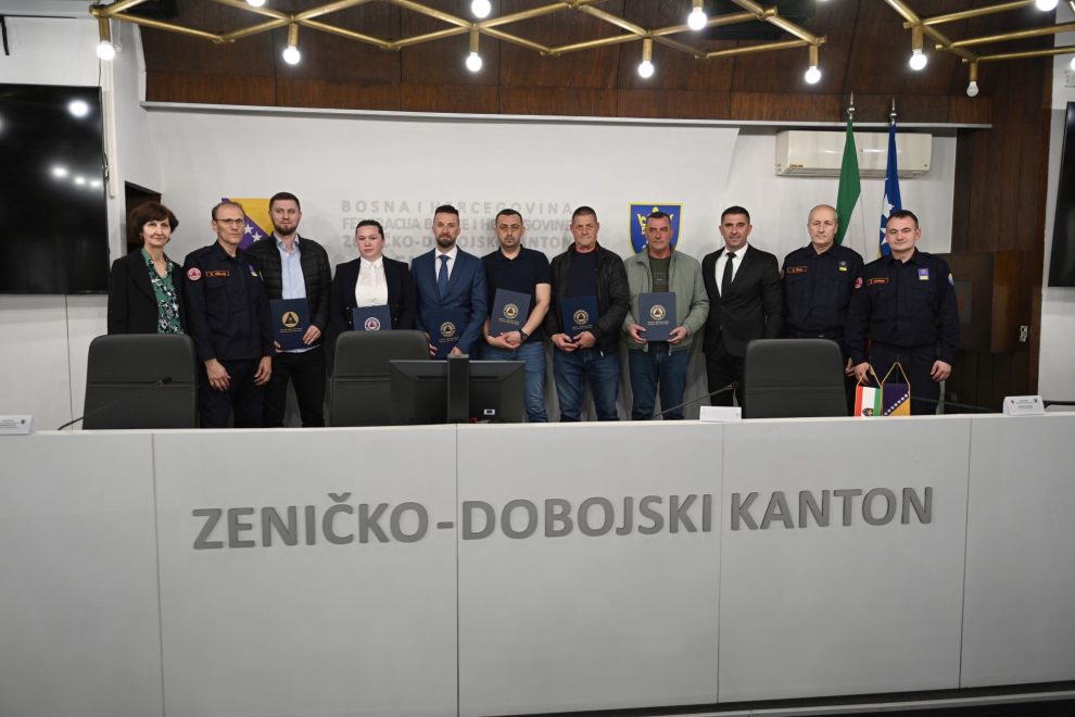 Komandant KŠCZ-a i ministar za prostorno uređenje, promet i komunikacije i zaštitu okoliša Adnan Šabani te načelnik KŠCZ-a i direktor Kantonalne uprave civilne zaštite Džavid Aličić, uručili su “Pisanu pohvalu” vatrogascima Rasimu Mehinoviću i Mehemedu Ruviću, pripadnicima Profesionalne vatrogasne jedinice Maglaj, Ibrahimu Spahiću iz Službe civilne zaštite Općine Vareš te posthumno Niki Tomasu, pripadniku Profesionalne vatrogasne jedinice Žepče.