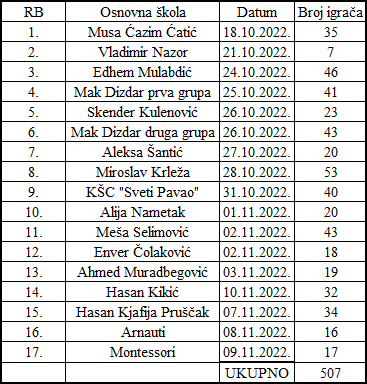 Ovo je posljednje prvenstvo Osnovnih škola i time je svaka škola formirala tim za predstojeće Ekipno prvenstvo Osnovnih škola, koje će se održati u decembru mjesecu.