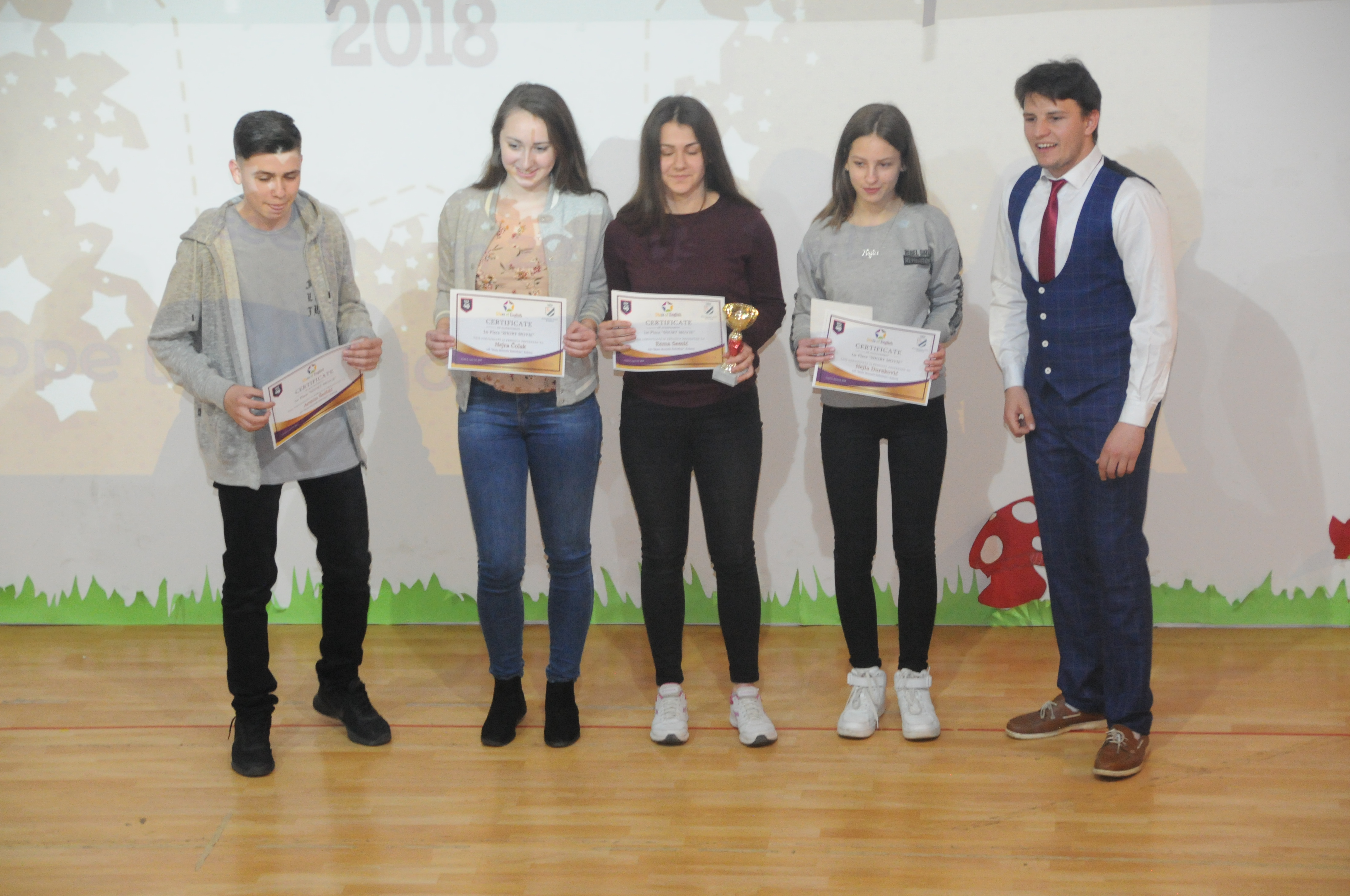 FOTO: Održano takmičenje iz engleskog jezika za učenike osmog i devetog razreda – Danas je u Međunarodnoj srednjoj školi u Zenici održano regionalno takmičenje iz engleskog jezika za učenike 8. i 9. razreda. Ovo je druga godina kako se takmičenje održava, a učešće je uzelo oko 100 učenika zajedno sa svojim mentorima. Učenici su imali priliku pokazati svoje vještine iz sljedećih kategorija: debata, sricanje, drama i kratki film. Učenici su pripremili dramske izvedbe na jednom zavidnom nivou, kako poznavanjem engleskog jezika tako i vještinama glume i scenskog nastupa. Kratki film su snimali ranije, a svi učenici su imali priliku pogledati iste danas, dok je žiri odabrao najbolje. U debati je učestvovalo 15 timova, koji su kroz 3 kruga debatiranja pokazali govorne, strateške i vještine uvjeravanja u argumente. Pčelica sricanja je kategorija individualnog takmičenja, gdje su djeca pokazala bogatstvo poznavanja engleskih riječi. Ovo je jedinstveno takmičenje iz engleskog jezika gdje djeca nisu klasično testirana, nego aktivno koristeći engleski jezik, pokazuju svoje sposobnosti i kvalitete.