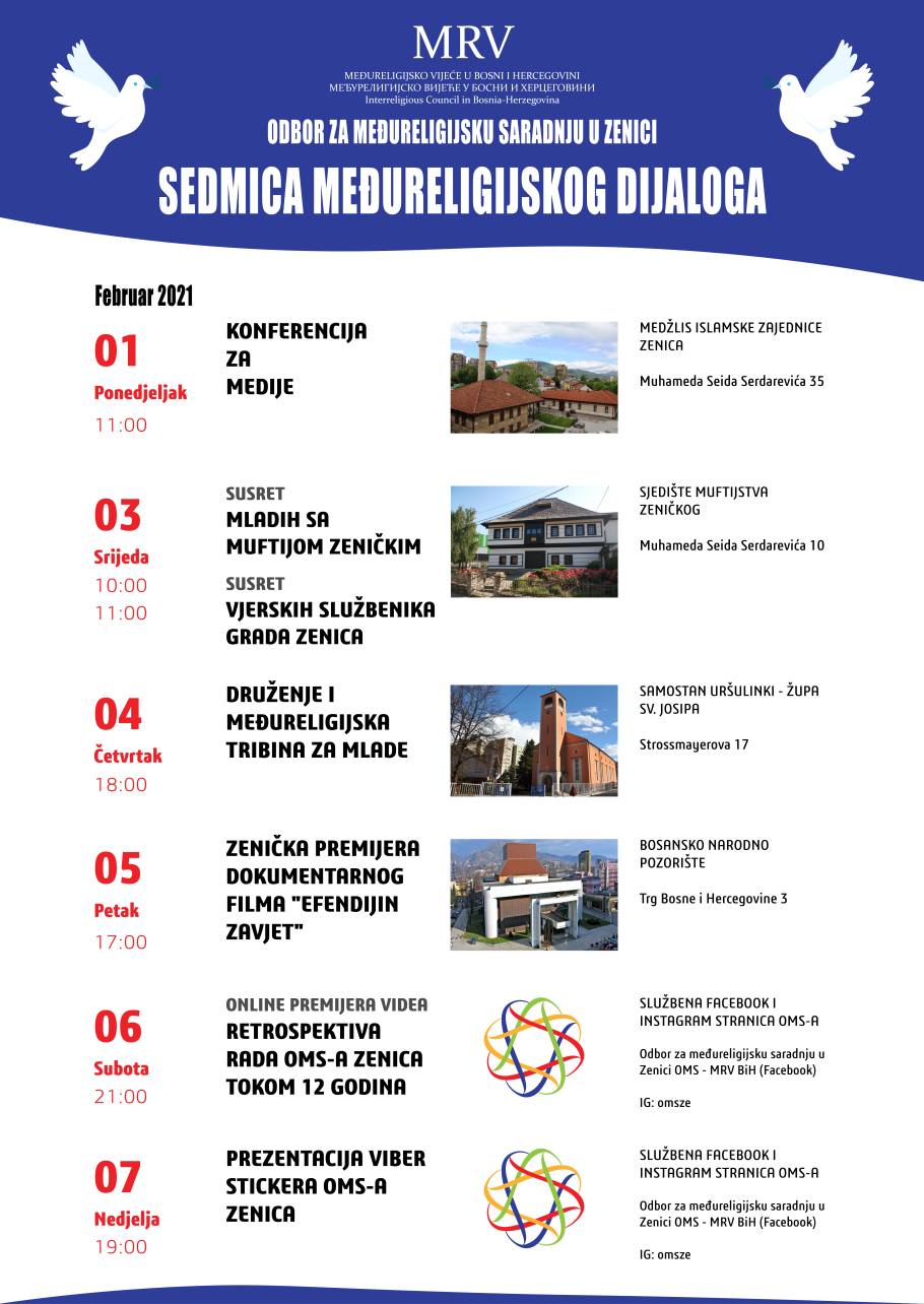 Program obilježavanja Sedmice međureligijskog dijaloga bio je raznolik, od susreta vjerskih čelnika i mladih, međureligijskih tribina, projekcija filmova te vikend online aktivnosti.