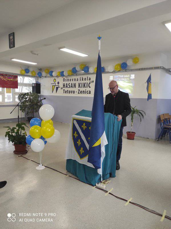 Nakon himne, uslijedio je inspirativni i emotivni govor ✨Direktora škole Mustafe Krge , koji je istakao historijski značaj Dana državnosti Bosne i Hercegovine, te podsjetio na hrabrost naših predaka i njihovu borbu za nezavisnost i slobodu.