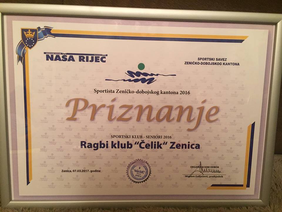 Istaknuto je da je Ragbi klub Čelik osnovan u martu 1972.godine i da je jedan od najuspješnijih sportskih klubova u bivšoj Jugoslaviji i BiH, koji ovih dana slavi 45 godina postojanja i igranja ragbija u Zenici.