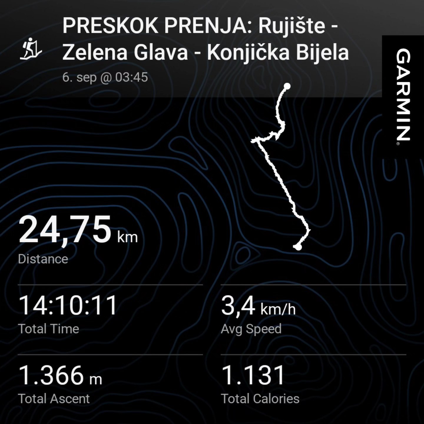Proteklog vikenda, 28 članova društva zajedničkim snagama prešlo je 24 kilometra, savladavši uspon od 1.360 metara i silazak od 1.880 metara. Prosječna brzina kretanja iznosila je 3,4 km/h, a cijela avantura trajala je 14 sati. Start s Rujišta bio je u ranim jutarnjim satima u 04.00, dolazak na Zelenu Glavu u 11.00, dok je završna tačka u Konjičkoj Bijeloj dosegnuta u 18.00 sati.