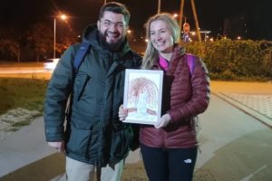 “Imali smo veliko zadovoljstvo da ih provedemo reprezentativnom zeničkom planinarskom stazom sa Lastavice na Tvrtkovac. Uprkos hladnom vremenu i vjetru, grupu smo izveli na 1307 metara visok vrha, sa kojeg smo imali pogled od Vitoroga do Velikog Žepa i od Maglića do Ozrena. Navečer smo prošetali turističkom turom kroz Zenicu, a uručili smo im i poklon sliku kojeg je naslikala naša Hana. Uspješan dan zasladili smo kolačima, te ispratili naše prijatelje u nastavak obilaska Srednje Bosne. Dođite – doćemo – nemojte da nas kese zavade.” naveli su iz Azimuth 135.