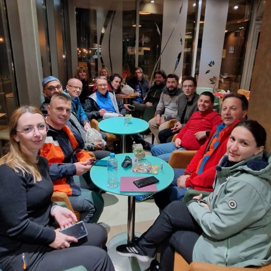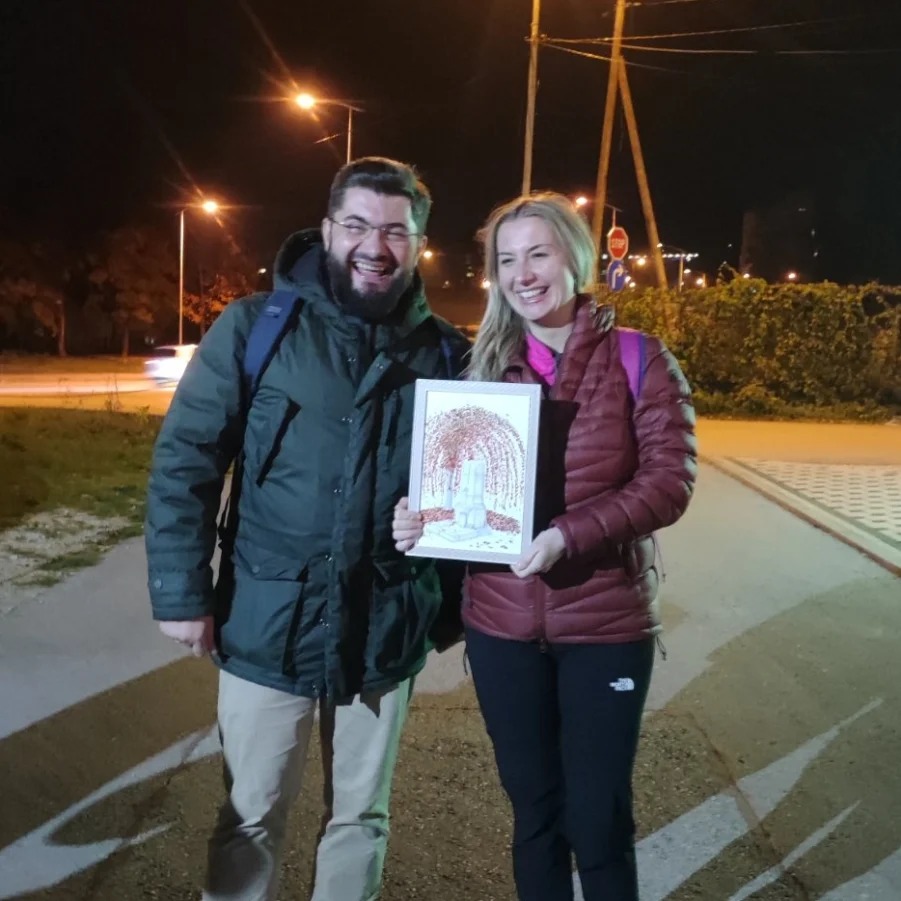 “Imali smo veliko zadovoljstvo da ih provedemo reprezentativnom zeničkom planinarskom stazom sa Lastavice na Tvrtkovac. Uprkos hladnom vremenu i vjetru, grupu smo izveli na 1307 metara visok vrha, sa kojeg smo imali pogled od Vitoroga do Velikog Žepa i od Maglića do Ozrena. Navečer smo prošetali turističkom turom kroz Zenicu, a uručili smo im i poklon sliku kojeg je naslikala naša Hana. Uspješan dan zasladili smo kolačima, te ispratili naše prijatelje u nastavak obilaska Srednje Bosne. Dođite – doćemo – nemojte da nas kese zavade.” naveli su iz Azimuth 135.