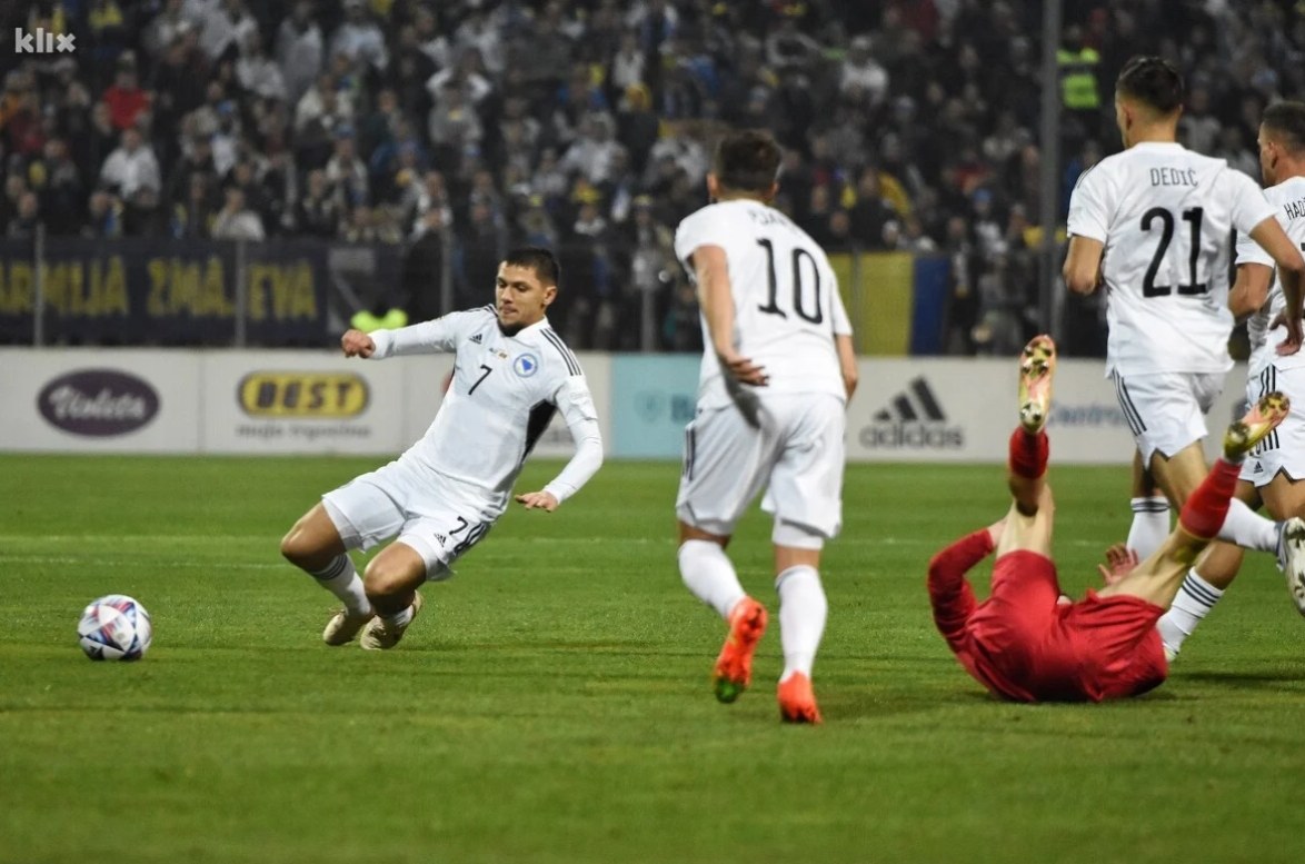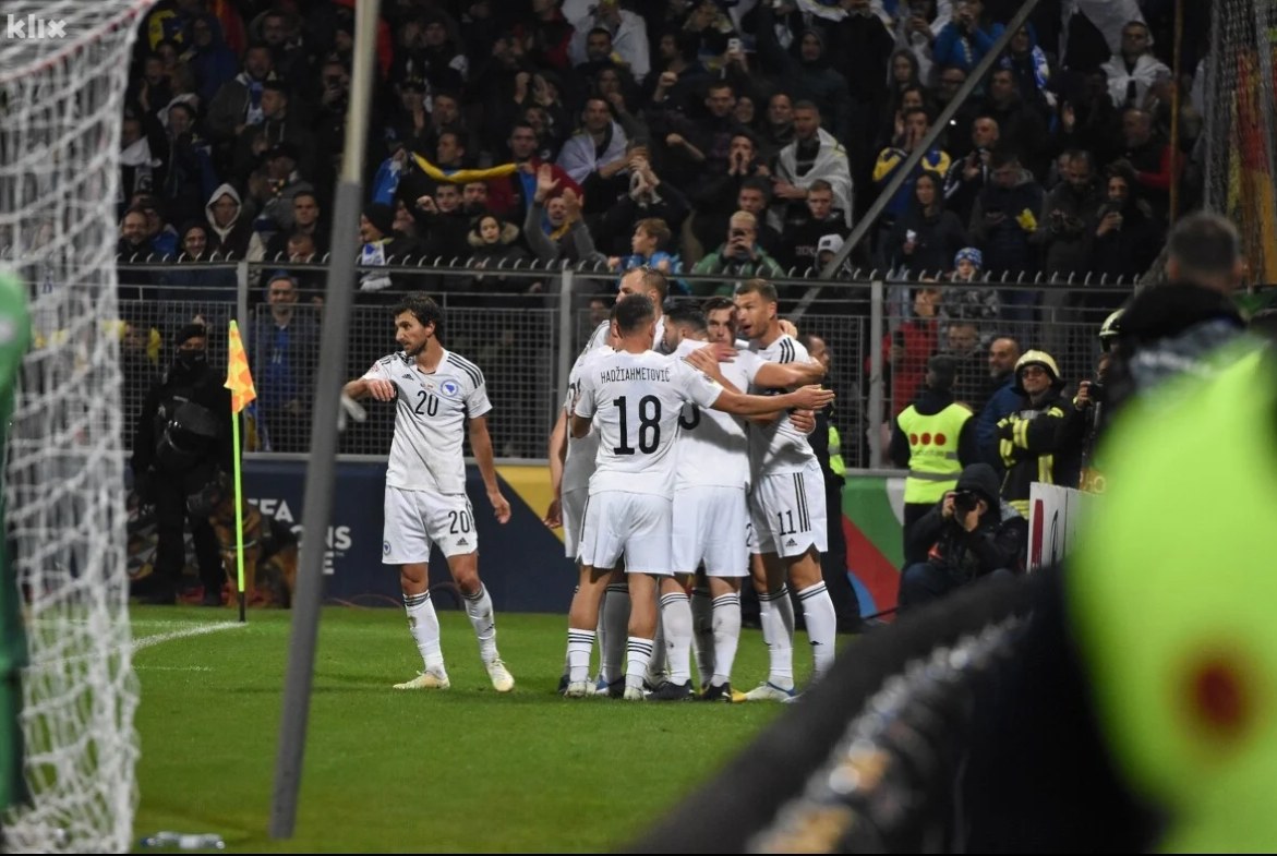 Nogometna reprezentacija Bosne i Hercegovine upisala je veliki trijumf rezultatom 1:0 protiv Crne Gore i tako osvojila prvo mjesto u svojoj grupi druge divizije Lige nacija, što znači i promociju u elitni rang. Utakmicu je ugostilo krcato Bilino Polje, a navijači obje reprezentacije potrudili su se da sve prođe u fer i sportskom nadmetanju. Pristalice reprezentacije BiH napravile su fantastičnu atmosferu i pružali su podršku Zmajevima tokom svih 90 minuta. U takvom okruženju izabranici Ivayla Peteva bolje su počeli meč. Susret je otvoren inicijativom bh. nogometaša, ali nije bilo većih prilika na startu. U trećoj minuti izdvaja se pokušaj Edina Džeke nakon kornera, ali je lopta otišla preko gola.
