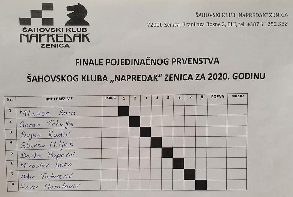 FOTO: Počelo finale ŠK „Napredak“ Zenica za 2020. godinu – U prostorijama kluba, koje se nalaze u Hrvatskom domu „Kralj Tomislav, šahovski klub „Napredak“ Zenica je organizator Finala prvenstva šahovskog kluba „Napredak“ Zenica za 2020. godinu.