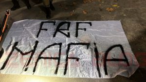Rumunski huligani pred dolazak u Zenicu razvili skandalozan transparent podrške Ratku Mladiću i