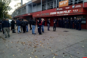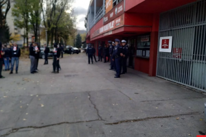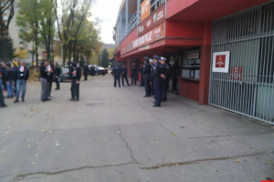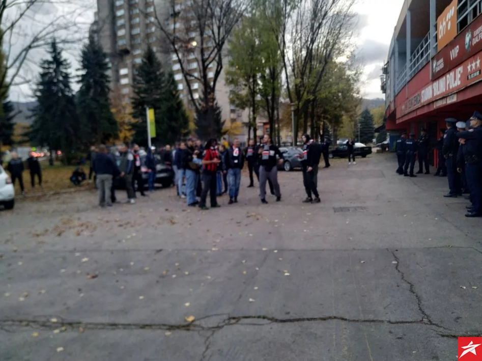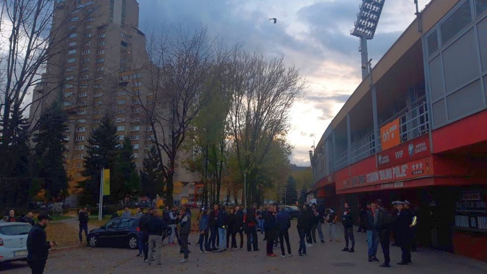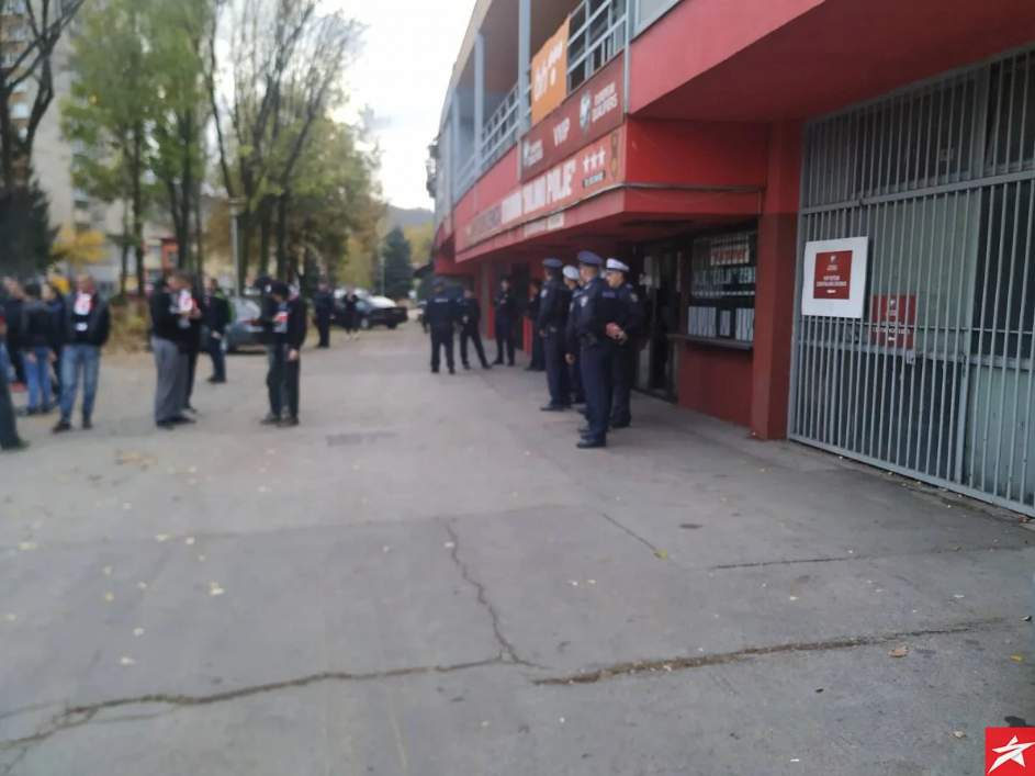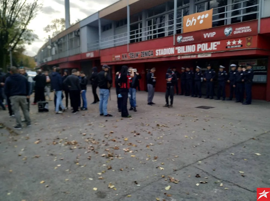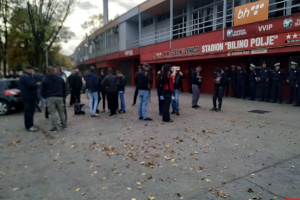 FOTO: Policija ispred stadiona, Robijaši žele objašnjenje – Najvatreniji navijači NK Čelik – Robijaši okupili su se pred stadionom Bilino polje. Oni su danas trebali da bodre svog tim na Grbavici protiv Željezničara, ali je utakmica otkazana zbog neisplaćenih dugovanja zeničkog tima i ovaj meč će Čelik izgubiti za zelenim stolom.