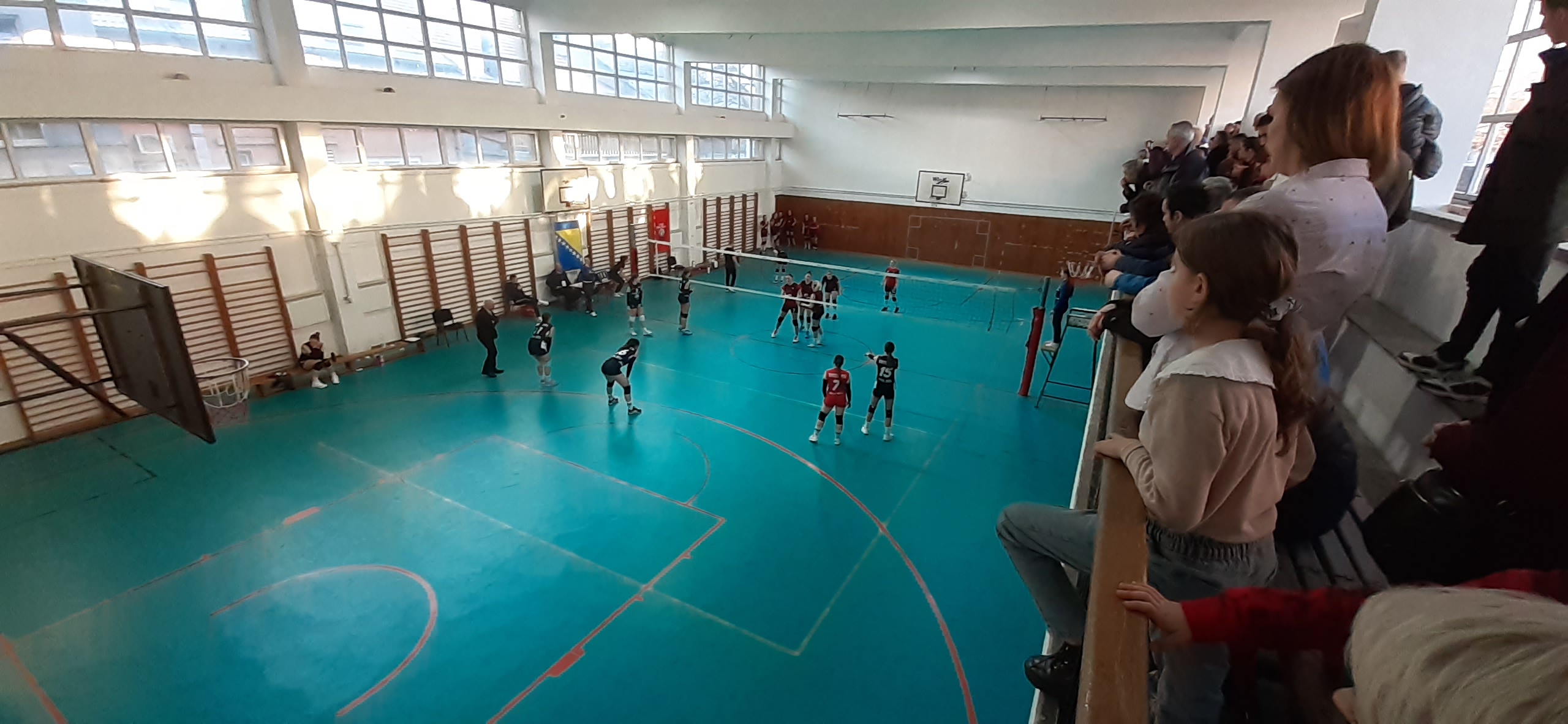 U prvom setu gošće iz Breze češće imaju vođstvo, koje je iznosilo i 16:23, ali domaće odbojkašice, bodrene frenetično iz prepune sale Prve gimazije uspjevaju prići na poen zaostatka, 23:24. To je bilo sve od domaćih u prvom setu, jer gošće ipak dobivaju prvi set sa 23:25 i vode sa 0:1 u setovima.