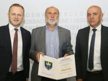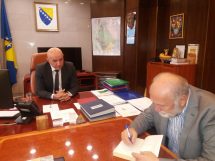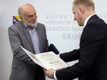 FOTO: Posjeta akademika Dževada Karahasana ZDK – U sjedištu Zeničko-dobojskog kantona, u svečanom činu, premijer Zeničko-dobojskog kantona Miralem Galijašević i predsjedavajući Skupštine Zeničko-dobojskog kantona Jasmin Duvnjak uručili PLAKETU Zeničko-dobojskog kantona, kao priznanje za izuzetan doprinos u razvoju društvenih djelatnosti, te afirmaciji kulture i umjetnosti, uvaženom akademiku Dževadu Karahasanu.