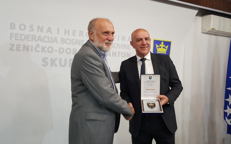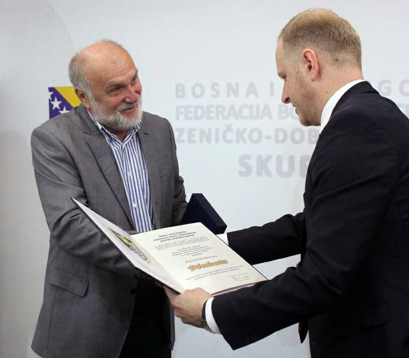 FOTO: Posjeta akademika Dževada Karahasana ZDK – U sjedištu Zeničko-dobojskog kantona, u svečanom činu, premijer Zeničko-dobojskog kantona Miralem Galijašević i predsjedavajući Skupštine Zeničko-dobojskog kantona Jasmin Duvnjak uručili PLAKETU Zeničko-dobojskog kantona, kao priznanje za izuzetan doprinos u razvoju društvenih djelatnosti, te afirmaciji kulture i umjetnosti, uvaženom akademiku Dževadu Karahasanu.
