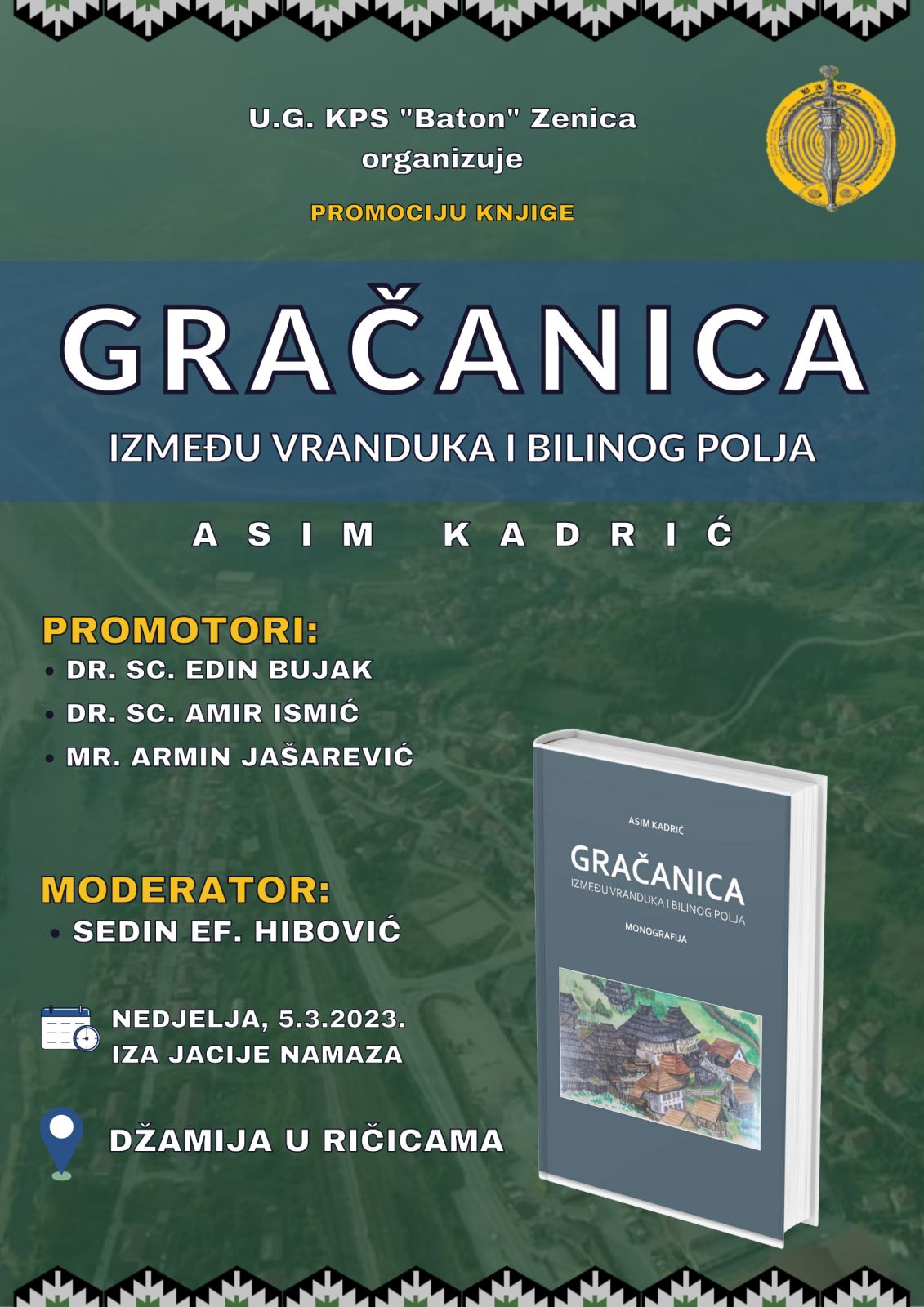 U nedjelju 05. marta 2023. godine Udruženje „Baton“ Zenica u saradnji sa Džematom “Šehidi” Ričice Zenica, realizovalo je četvrtu po redu promociju knjige pod nazivom „Gračanica između Vranduka i Bilinog polja“ autora Asima Kadrića iz Zenice.