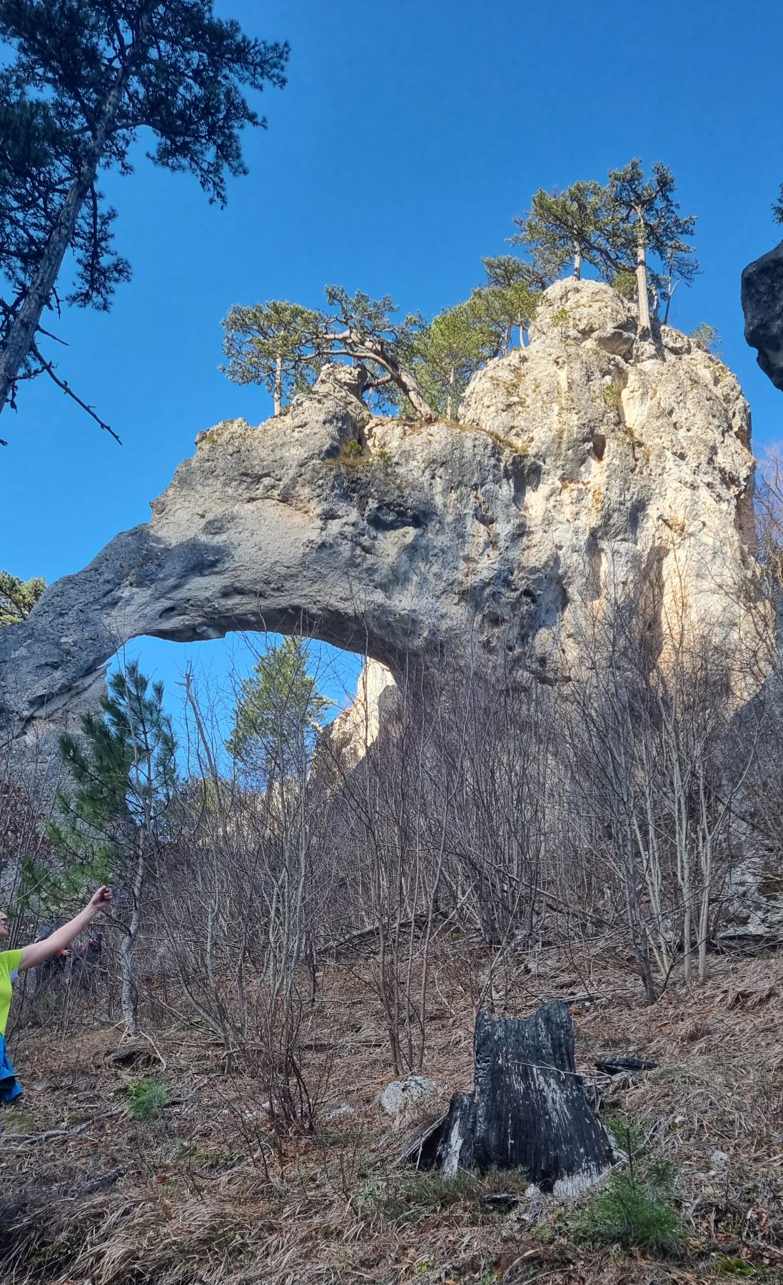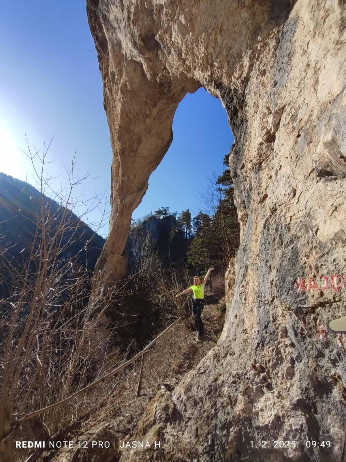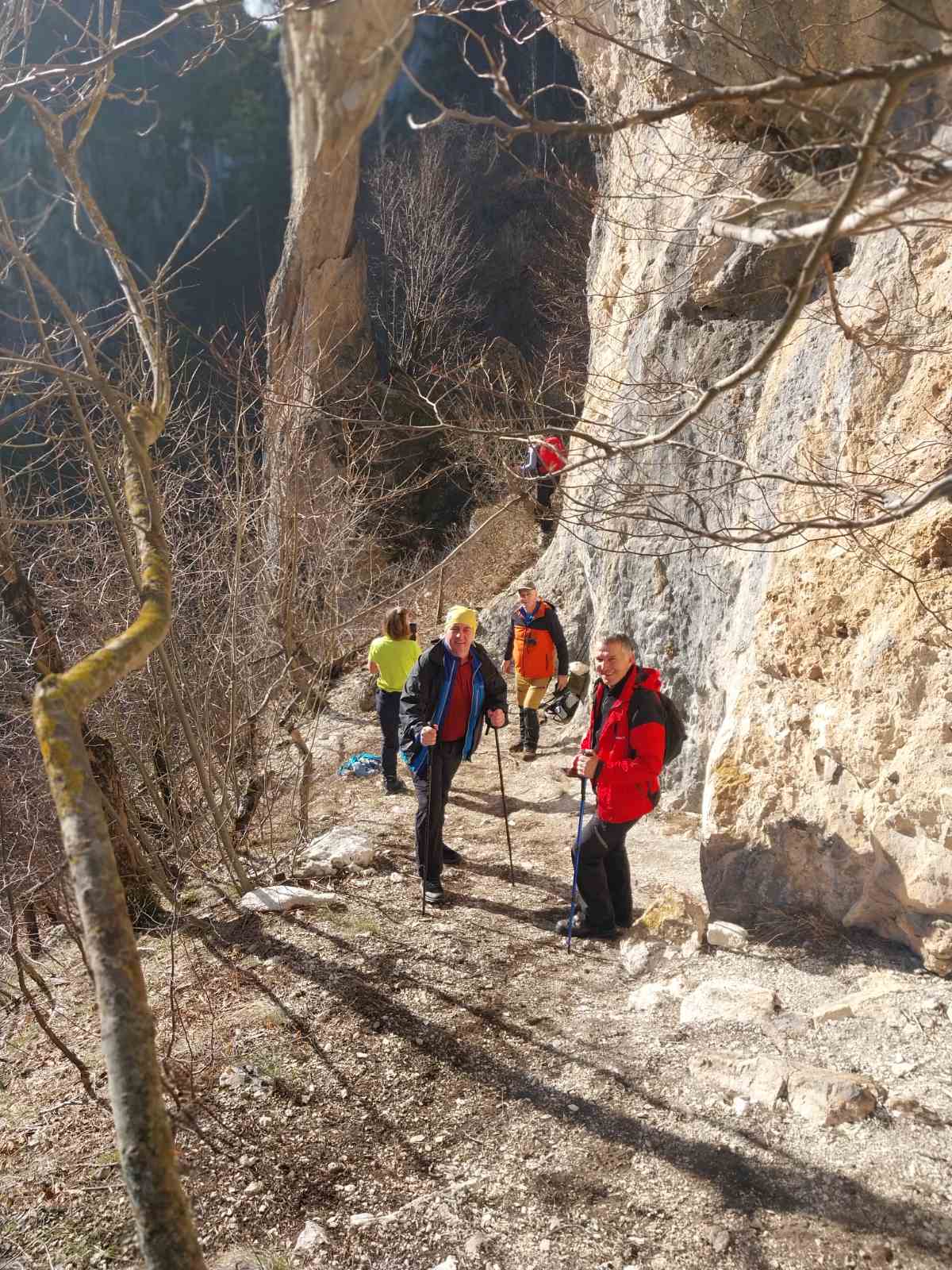 Ostavili smo svoja vozila i onda nastavili pješačiti do prelijepe lokacije koja nosi naziv Hajdučka vrata. Poslije laganog terena krenuli smo uz veliki uspon do Hajdučkih vrata-lokacije koja veoma liči na prirodni fenomen Hajdučka vrata na planini Čvrsnica. Bez problema uz veći broj otkucaja srca i malo umora stigli smo Hajdučkih vrata kod Bugojna koja svojom ljepotom ne zaostaje mnogo od poznatijeg prirodnog fenomena na Čvrsnici. Poslije obaveznog fotografisanja iz svih uglova nastavili smo uspon i krenuli sa silaskom niz veliku strminu koju smo lagano savladali. Pješačili smo oko 4 kilometra uz 330 mnv nivelacije.