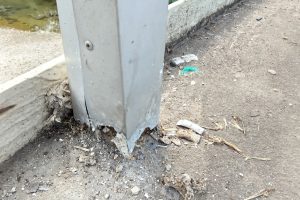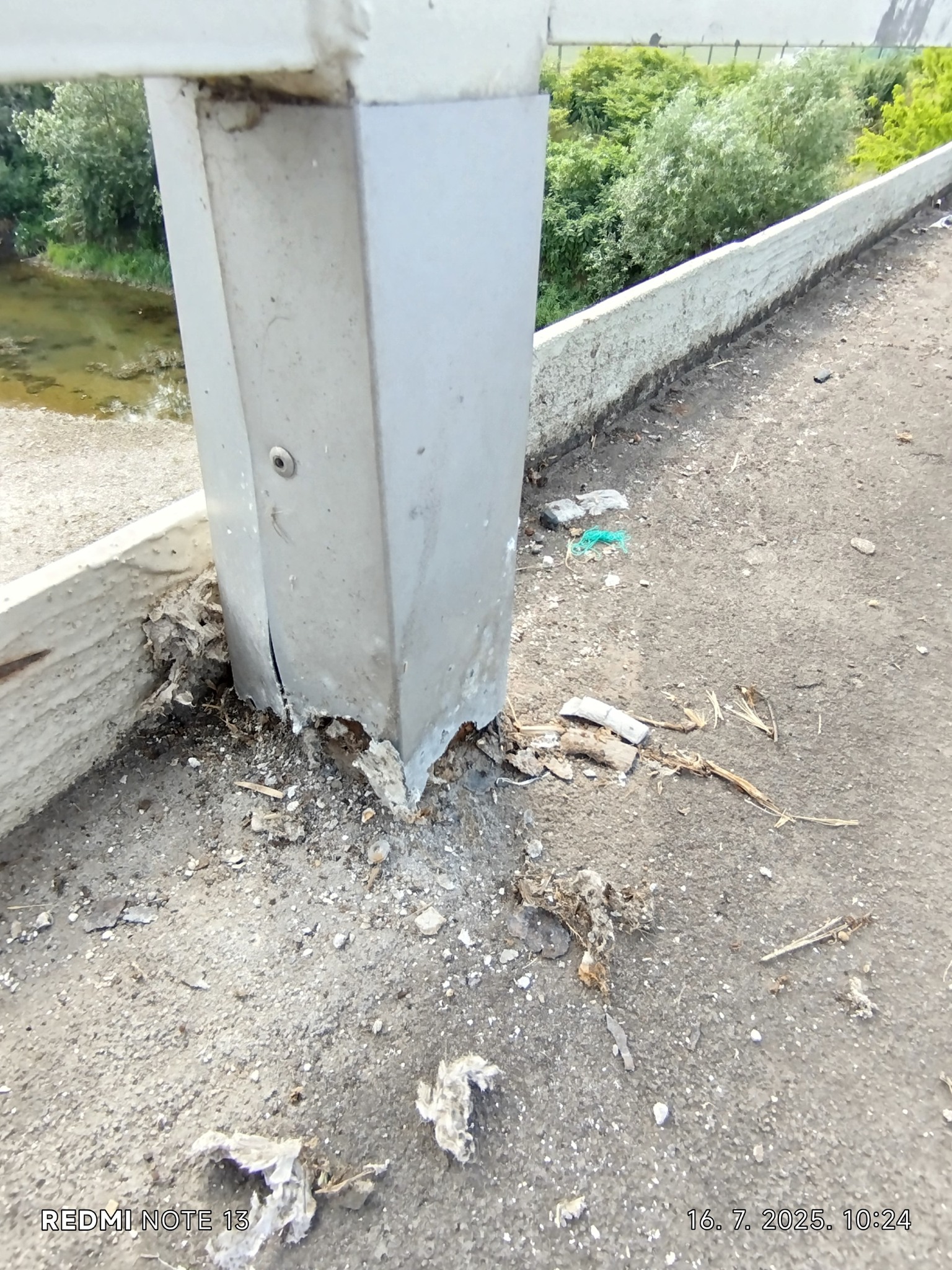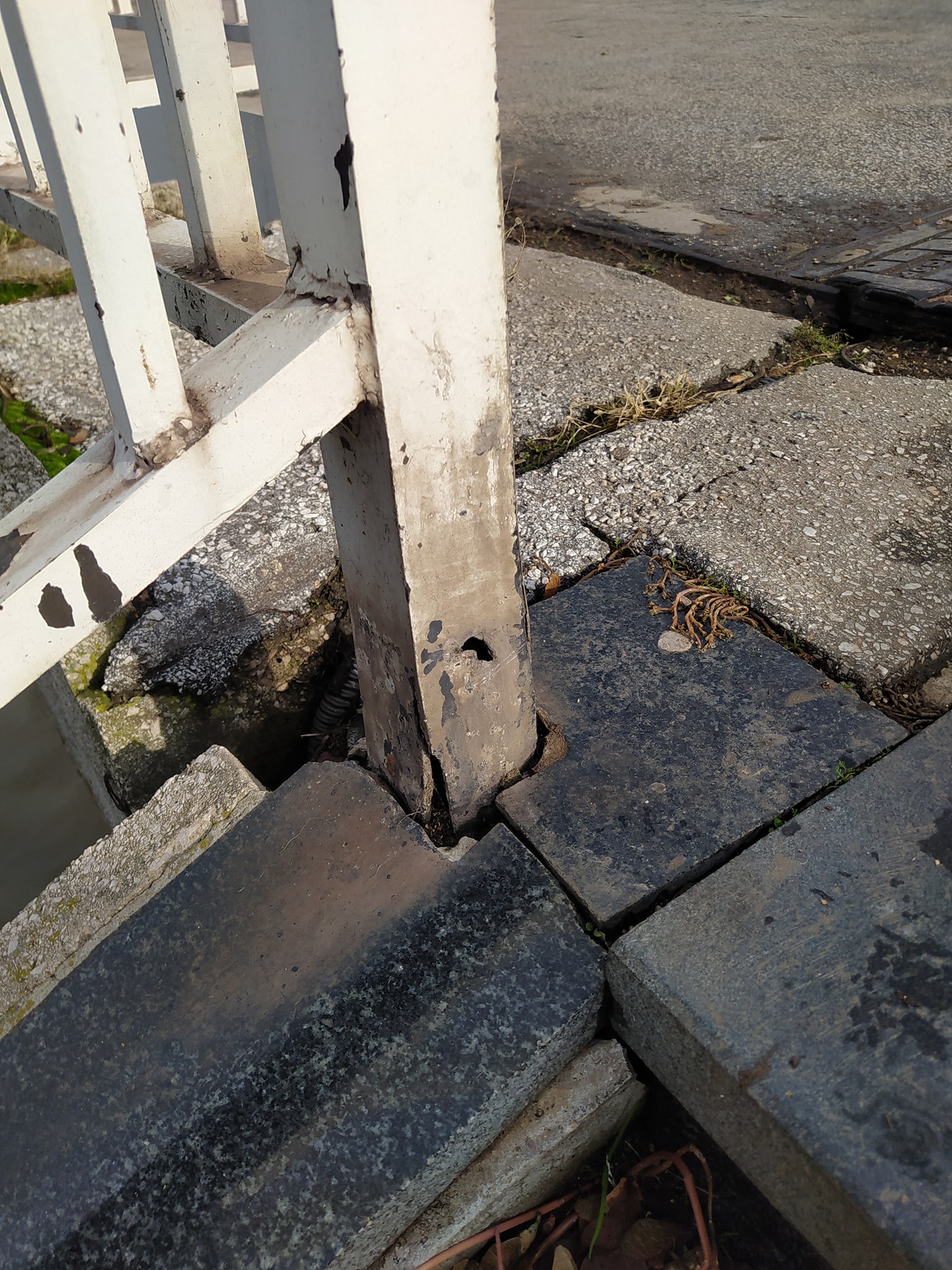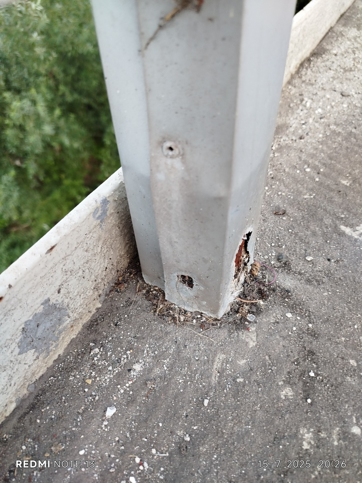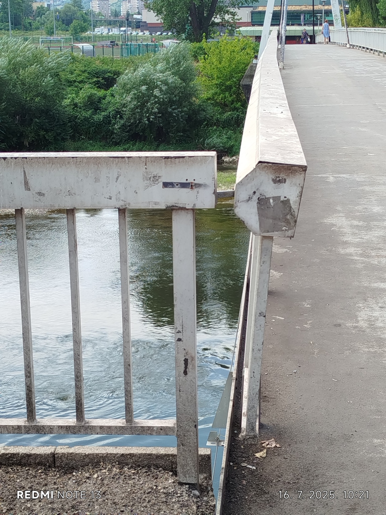 Prema njegovim riječima, stanje ograde već sada ukazuje na deformacije i naginjanje prema rijeci, dok jedan oštećeni vijak drži čitavu konstrukciju.
