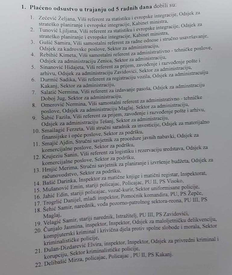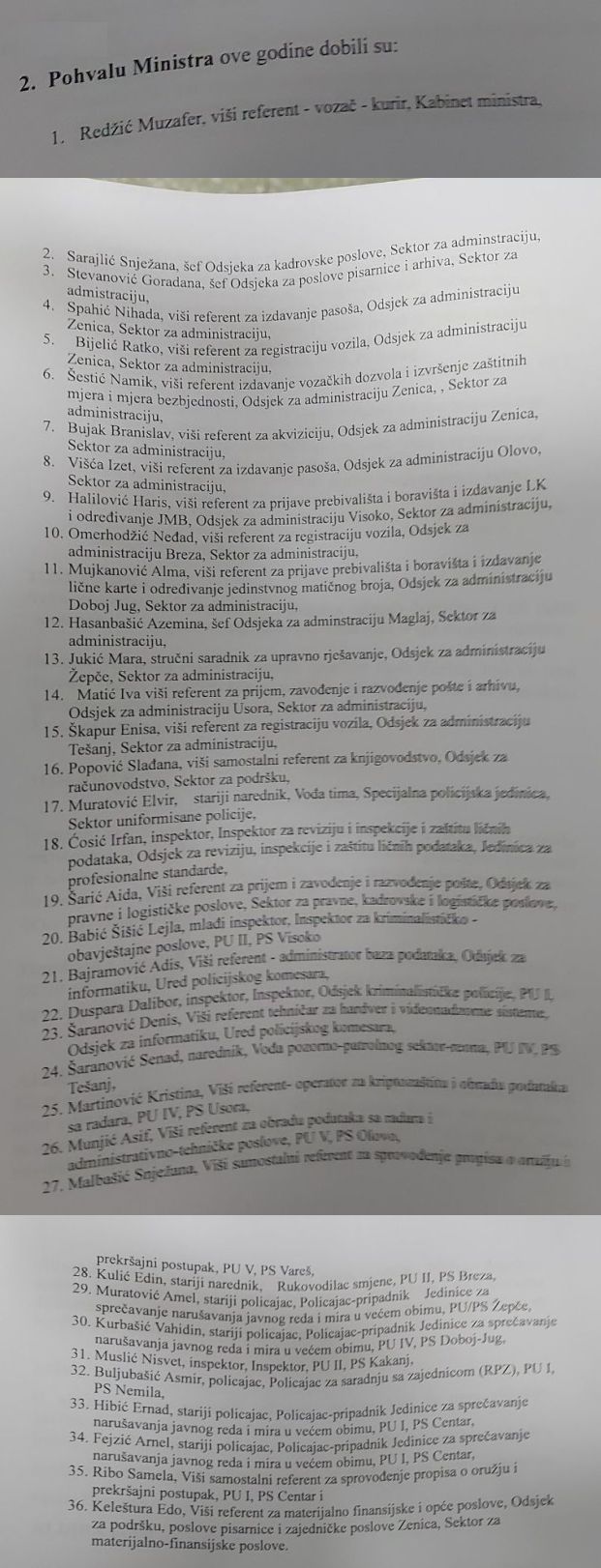 Također, 22 službenika su nagrađeni sa plaćenim odsustvom od pet dana, dok je 36 službenika dobilo pohvalu ministra.