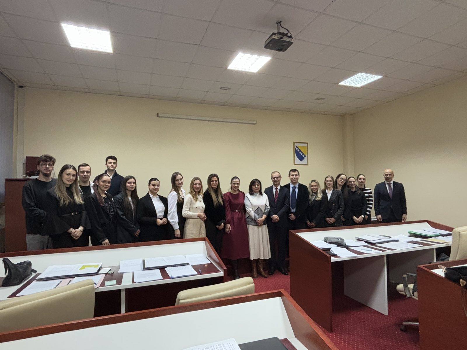 Studenti III godine: Ema Buro, Ajna Alispahić, Advin Čivić i Amar Haseljić i studenti IV godine: Larisa Šabić, Džejla Škiljo, Sajra Kulalić i Harun Selimović, izveli su fantastičnu simulaciju glavnog pretresa pred Sudom BiH i pokazali izvanredne vještine zastupanja u krivičnom postupku na čemu im ovom prilikom još jednom čestitamo.