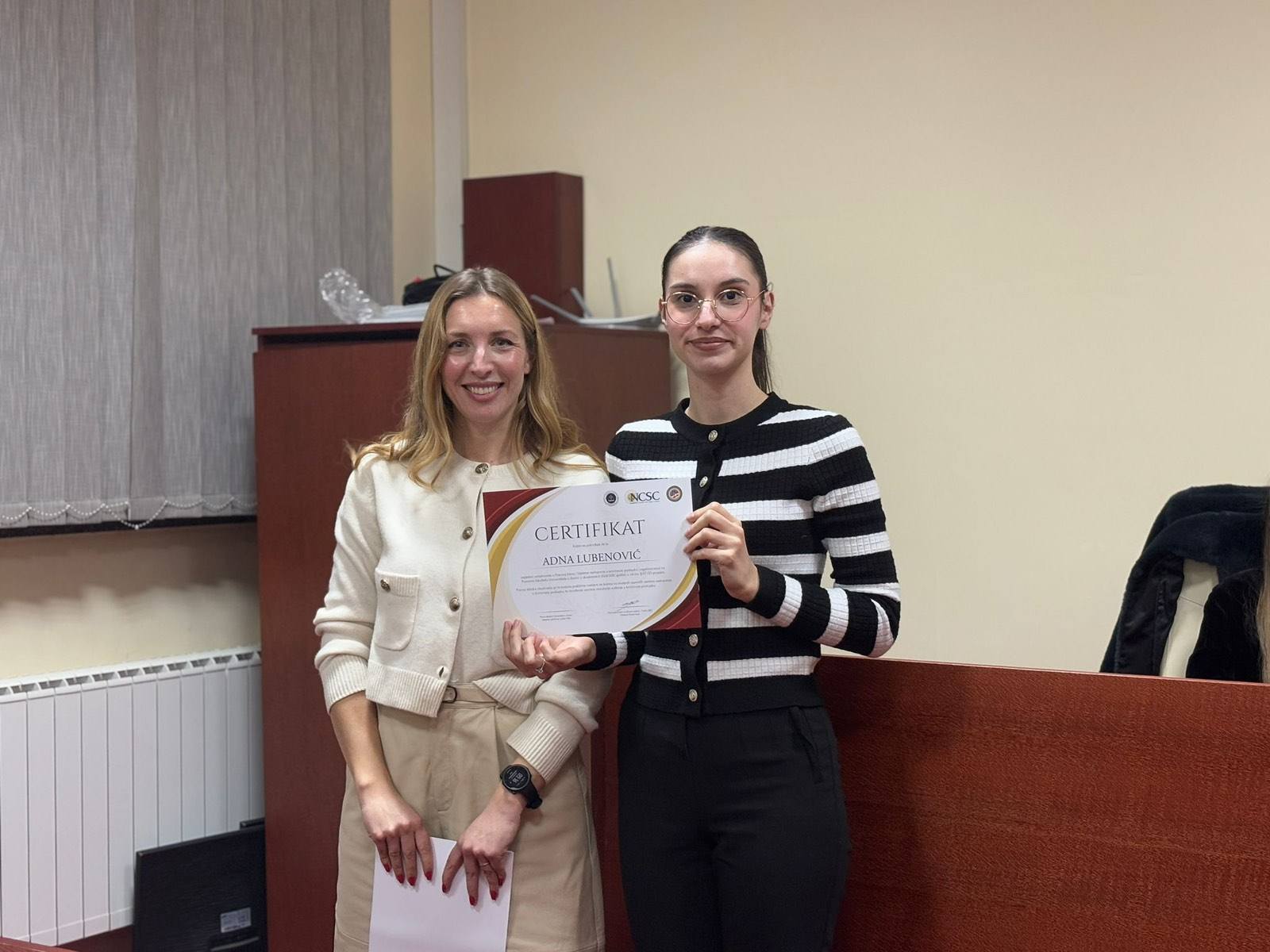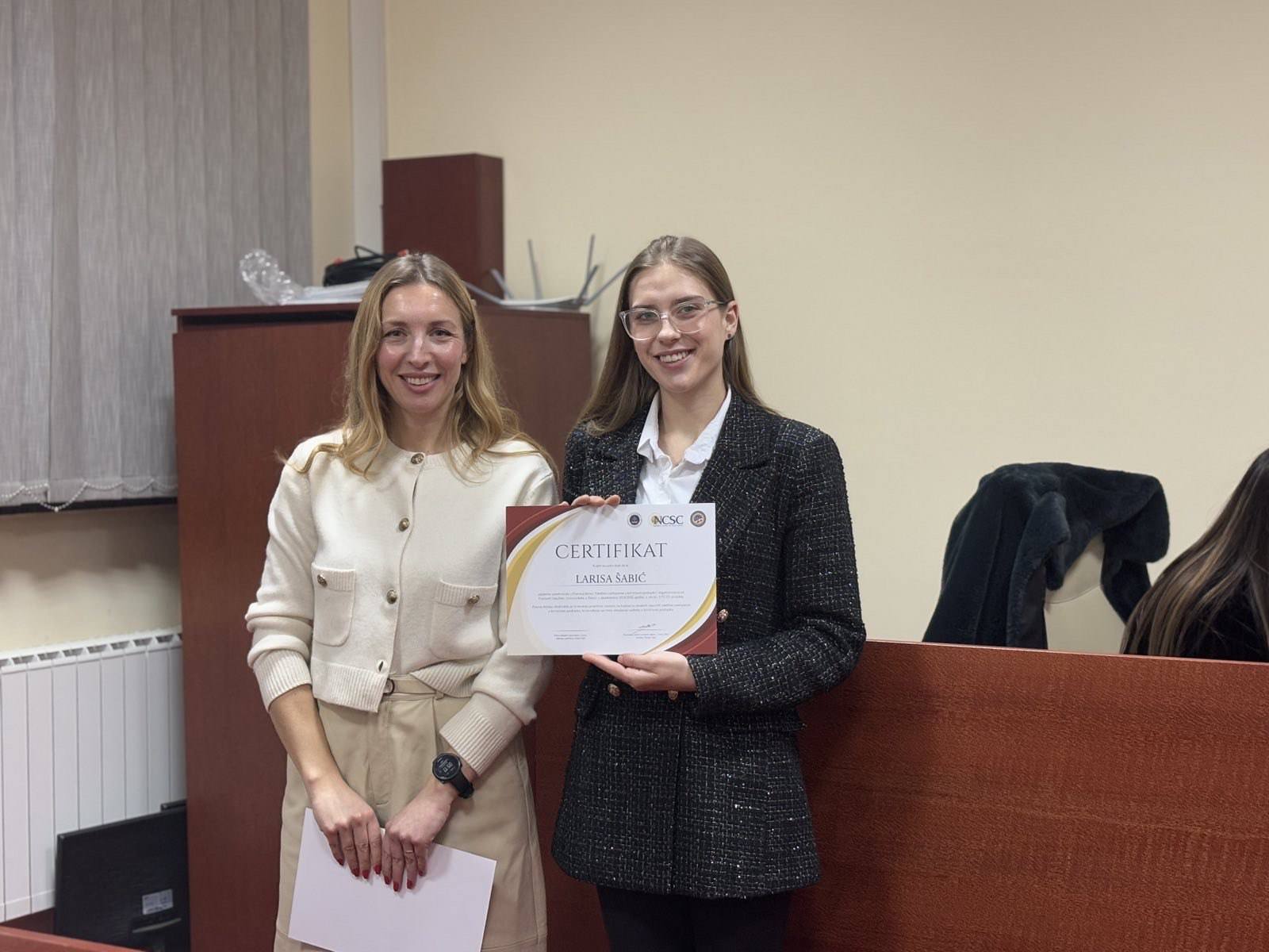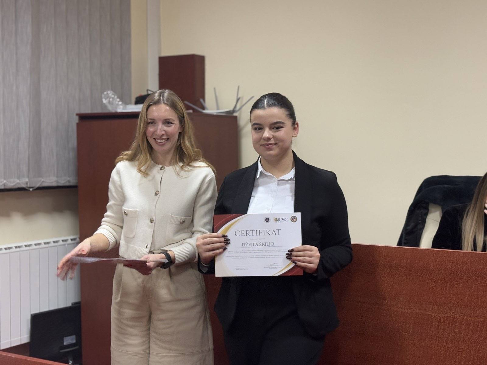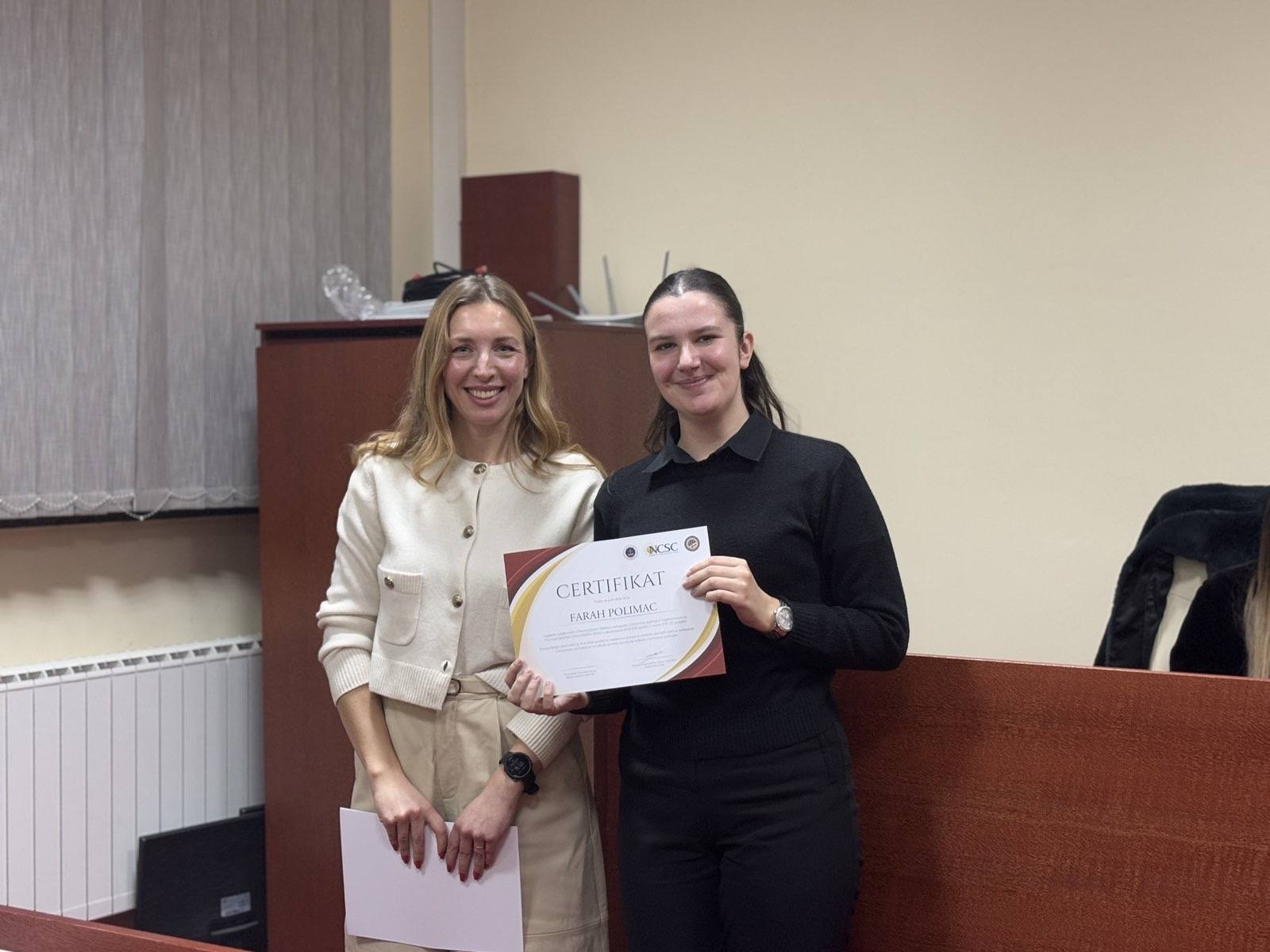 U prostorijama fakulteta održana je svečana završnica projekta Pravna klinika “Vještine zastupanja u krivičnim predmetima” koju fakultet realizira zajedno sa Nacionalnim centrom za državne sudove – Uredom u BiH u okviru JUST ED projekta.