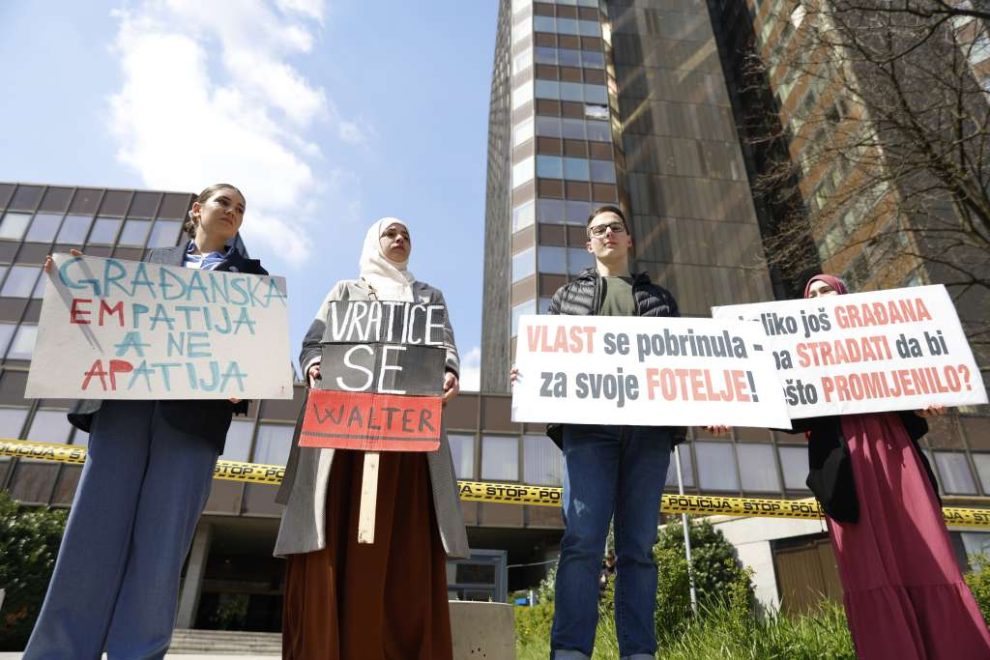 Studenti su izrazili nezadovoljstvo zbog neodgovaranja Vlade BiH na njihove zahtjeve vezane za poplave i odrone koji su prošle godine u Jablanici i drugim mjestima u BiH odnijele 27 života.
