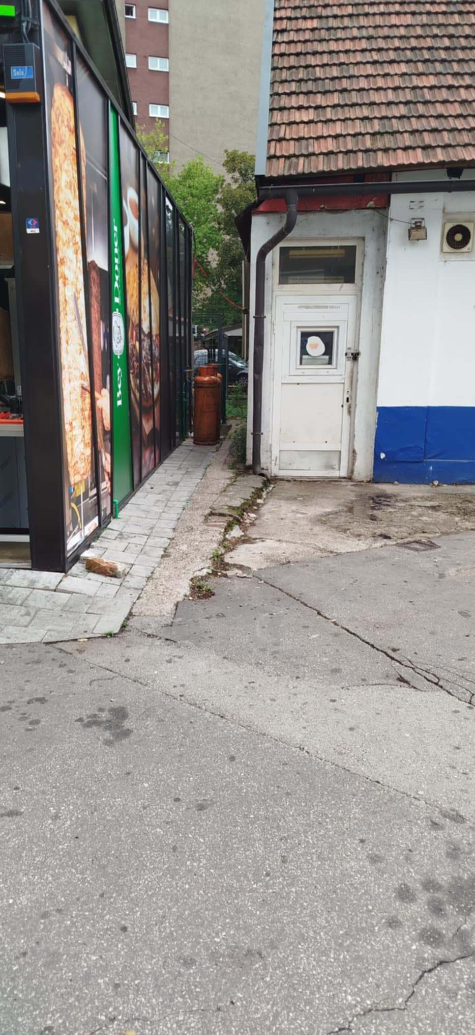 Obraćam Vam se kao građanka Grada Zenice, koja je primjetila da se na lokaciji Trg Alije Izetbegovića, u neposrednoj blizini ugostiteljskog objekta „Korzo“, tačnije uz montažni ugostiteljski objekat koji je otvoren za prodaju donera (ranije objekat pod nazivom „Mlinar“ ), uz objekat, na javnoj površini, nalaze dvije dvije (2) velike plinske boce.