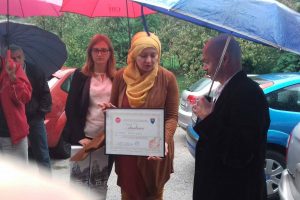 Primopredaju kombija je izvršila direktorica Meldina Ugarak ispred prostorija Dnevnog centra u Crkvicama, zgrada JU Dom porodica Zenica.