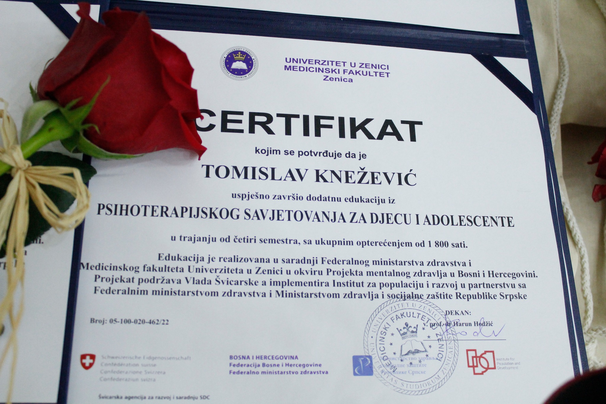 Svjetski dan mentalnog zdravlja, koji se tradicionalno obilježava 10. oktobra, na Medicinskom fakultetu Univerziteta u Zenici (UNZE) danas je obilježen i dodjelom certifikata za 19 polaznika obuke prve generacije dječijih i adoloscentnih psihoterapeuta i certifikata sistemskih porodičnih savjetnika i socijalnih ustanova u Federaciji Bosne i Hercegovine.