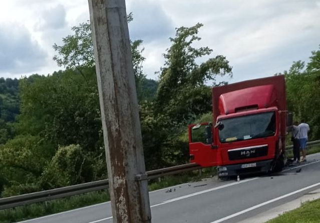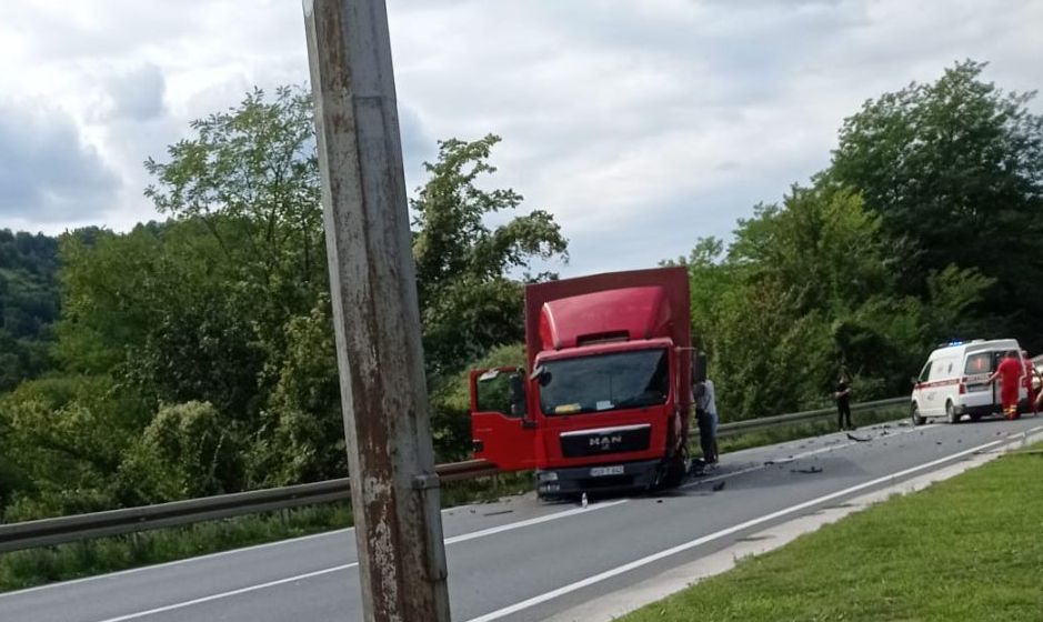U nesreći su učestvovali teretno i putničko motorno vozilo.