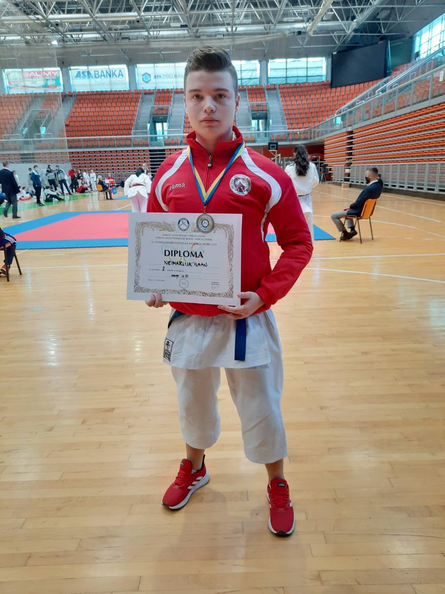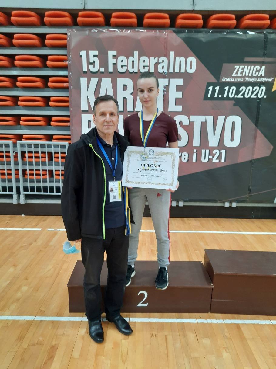 FOTO: Tri medalje za KK „Internacional“ Zenica – Dana 11.10.2020.godine u Gradskoj Areni „Husejin Smajlović“ Zenica održano je 15. Federalno prvenstvo u karateu za kadete, juniore i U21 seniore, sa 340 takmičara iz 64 kluba. Nakon duže pauze nastale usljed pandemije Covid-19, Karate klub „Internacional“ Zenica u pratnji trenera Kelešture Selvera, na ovom prvenstvu nastupio sa 5 takmičara, koji su osvojili 3 medalje i to 2 srebrene i 1 bronzanu.