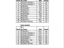 Poredak u generalnom plasmanu u ostalim kategorijama i u trkama voženim u subotu i nedjelju, muškarci, generalni plasman, U-19: 1. Slovenija 1 992 boda, 2. Slovenija 2 893, 3. Rusija 860; U-23: 1. Slovenija 986, 2. Češka 2 887, 3. Češka 1 886; master: 1. Češka 1 972, 2. Češka 2 928, 3. Rusija 860; slalom: U-19: 1. Slovenija 1, 2. Slovanija 2, 3. Rusija; U-23: 1. Slovenija, 2. Češka 2, 3. Češka 1; master: 1. Češka 2, 2. Češka 1, 3. Rusija; spust: U-19: 1. Slovenija 1, 2. Češka, 3. Slovenija 2; U-23: 1. Slovenija, 2. Češka 1, 3. Češka 2; master: 1. Češka 1, 2. Češka 2, 3. Rusija. Žene, generalni plasman U-23: 1. Srbija 972, 2. Rusija 948, 3. -; slalom: U-23: 1. Rusija, 2. Srbija, 3. -; spust: 1. Srbija, 2. Rusija, 3. – .