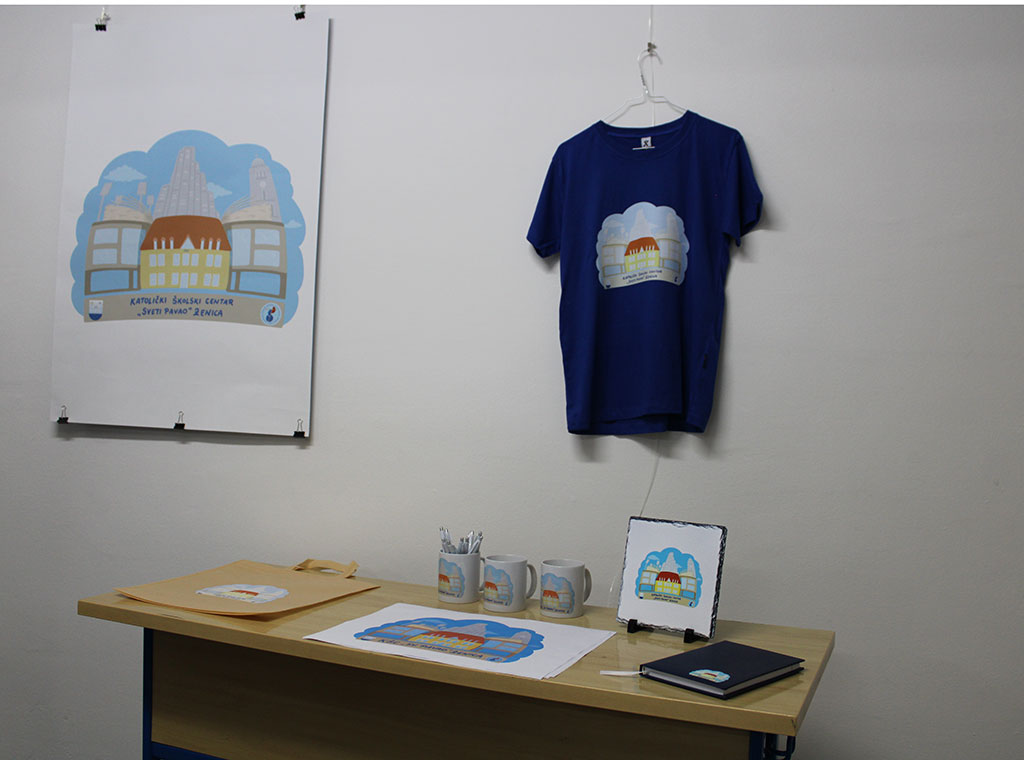 Osim izrade reprodukcija, cilj je bio tu ilustraciju škole moći prenositi na razne promotivne materijale poput rokovnika, kalendara, šalica, hemijskih olovki itd. koji bi se onda dijelili prijateljima Centra i nagrađenim učenicima.