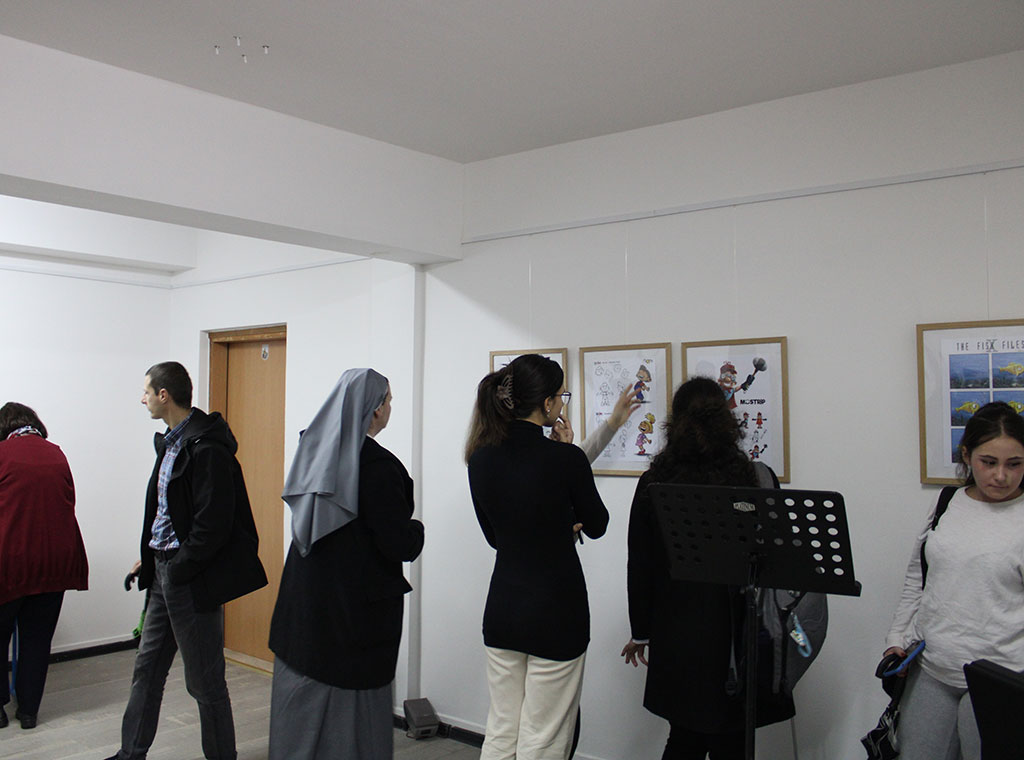 Na otvorenju su najprije nastupile učenice Gimnazije Nejira Fazlić i Džena Sačak, koje su odsvirale himnu Sustava katoličkih škola za Europu. Tokom svečanosti, koja je zamišljena i kao sat likovne umjetnosti za gimnazijalce KŠC-a, prisutnima su se obratili ravnatelj Centra vlč. Vlatko Rosić i sam umjetnik Zdravko Cvjetković.