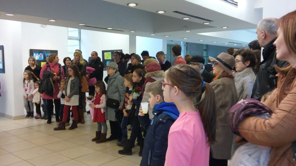 Izloženo je dvadesetak radova dvije starosne grupe, učenika osnovnih škola, koji tek treba da kroče u svijet likovne umjetnosti i onih starijih, koji su ovu umjetnost zavoljeli kao amateri ali s puno ljubavi.