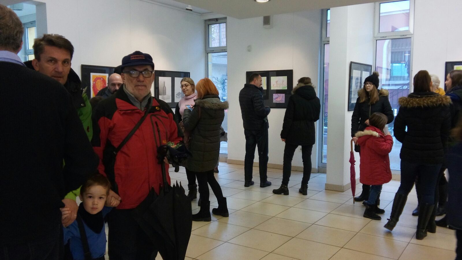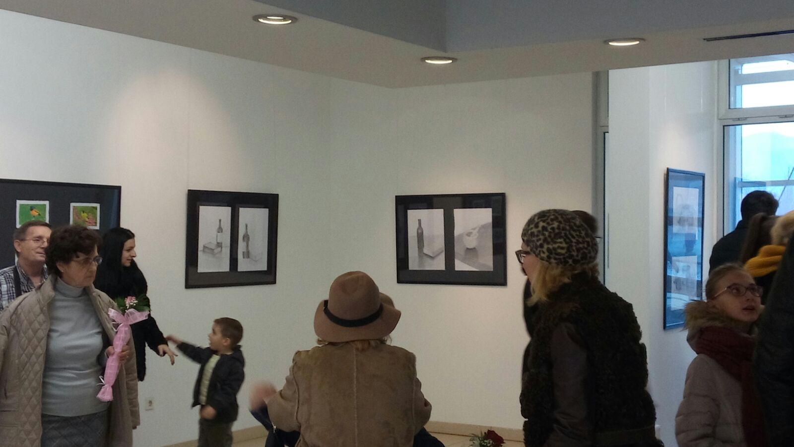 Izloženo je dvadesetak radova dvije starosne grupe, učenika osnovnih škola, koji tek treba da kroče u svijet likovne umjetnosti i onih starijih, koji su ovu umjetnost zavoljeli kao amateri ali s puno ljubavi.