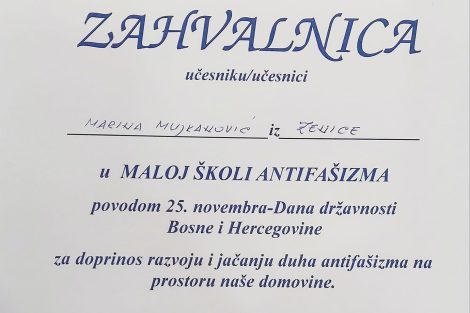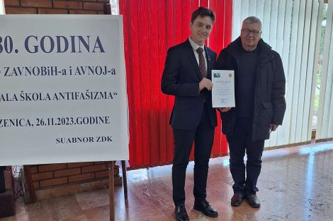 Danas, 26.11.2023.godine u Zenci, u organizaciji SUABNOR-a ZDK –a, povodom 80. godišnjice od Prvog zasjedanja ZAVNOBiH -a i Dana državnosti BiH, 25.novembra, održana je Mala škola antifašizma, saopštio nam je Sretko Radišić, predsjednik SUABNOR-a ZDK–a.