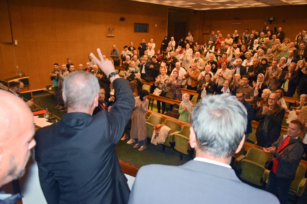 U Velikoj sali Grada Zenica pred nekoliko stotina Zeničana obratili su se na tribini koju je organizovala Asocijacija Mostovi Prijateljstva BiH u saradnji sa udruženjem “Mladi muslimani” kao uvodničari ambasador Palestine u BiH Rezeq Namoura i Sanadin Voloder novinar i aktivista.