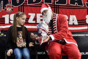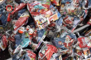 Paketići u kojima je mnoštvo artikala raznih slatkiša i grickalica i ovaj su put izmamili osmijeh na lica mališana. Djed Mraz je svakom prisutnom dječaku i djevojčici uz paketić iz svoje torbe dodijelio i po Kinder jaje a mališani su mu uzvratili recitacijama i pjesmicama.