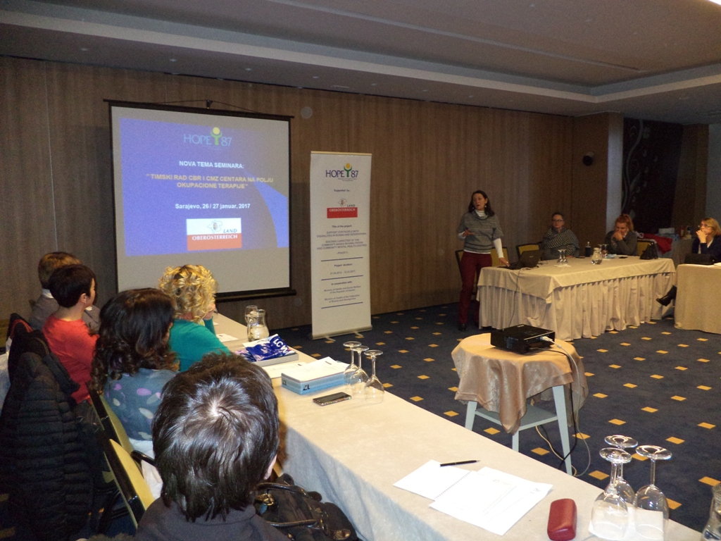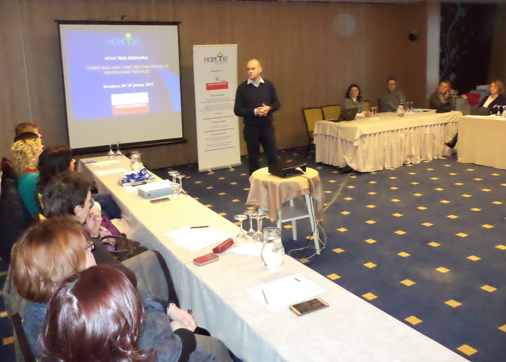 27. januara, 2017 u Sarajevu završena je kontinuirana edukacija za rehabilitacione timove CMZ i CBR centara Bosne i Hercegovine iz okupacione terapije kao jedne od ključnih oblasti za unaprijeđenje zdravstvenih usluga osoba sa invaliditetom. Kontinuirana edukacija se odvijala u sklopu projekta koji je implementirao HOPE’87 podržanim od pokrajine UPPER AUSTRIA pod nazivom „Izgradnja kapaciteta CBR i CMZ centara u BIH“, a koji je imao za cilj povećanje efikasnosti zdravstvenog sistema u BiH na polju rehabilitacije osoba sa invaliditetom.