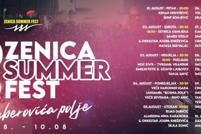 Jedan od najznačajnijih ljetnih kulturno-zabavnih događaja u Bosni i Hercegovini, Zenica Summer Fest (ZSF), večeras ulazi u svoje osmo izdanje. Manifestacija će trajati od 1. do 10. augusta, a organizatori najavljuju bogat i raznovrstan program koji će obuhvatiti večernje muzičke nastupe, dnevne sadržaje za djecu, folklorne večeri i prateće događaje u više dijelova grada.