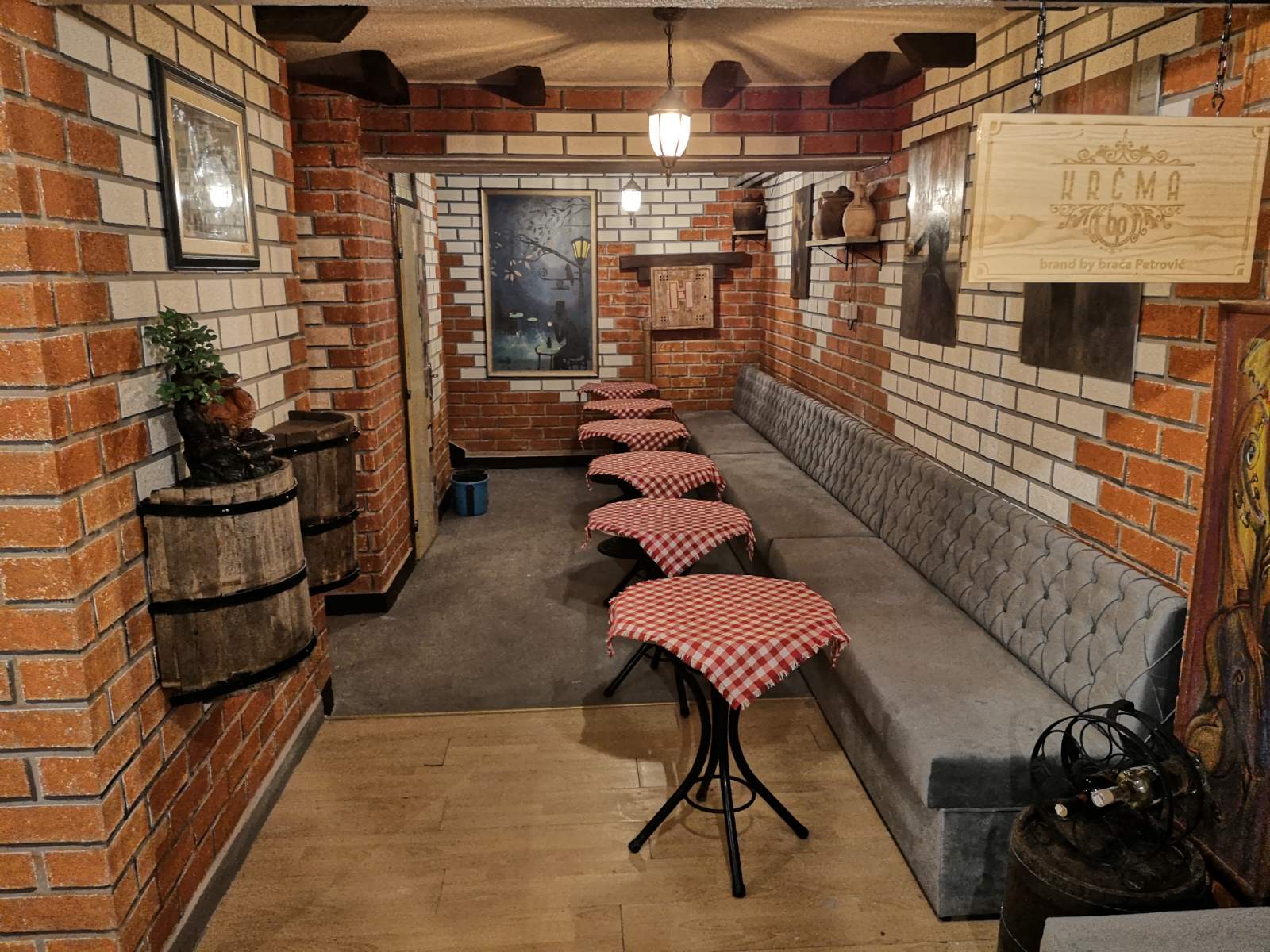 U svečanom obraćanju zvanicama, braća Petrović zahvalili su se svim svojim prijateljima koji su im u ovom životnom poduhvatu na različite načine davali svoju nesebičnu podršku, te upriličenjem video prezentacije pojasnili i zbog čega se na otvorenje tako dugo čekalo. Naime, realizacija ovog poduhvata zahtijevala je mnogo danonoćnog truda i rada, posebno na renoviranju i adaptaciji, kako bi “Krčma BP” u svojih 120 kvadratnih metara dobila izgled atraktivnog ambijenta, oplemenjenog toplinom starih vremena, u kojoj će njeni vlasnici nastaviti sa njegovanjem tradicije dobrih druženja, uz pjesmu i vjeru u bolje sutra, ma kakvom nam beznadežnošću prijetila neizvjesna budućnost. A da bi to tako i bilo, pretežni dio poslova izvršavao se korištenjem arhaičnih metoda, zbog čega bi se zapravo ova krčma sama po sebi mogla smatrati jednim zasebnim umjetničkim djelom. Za vrhunske majstorske radove zaslužni su Benaris Huseinbegović i Šefik Smriko, dok je artisitički dojam “Krčma BP” zavještanje duše i ruku neprikosnovenog zeničkog slikara Hilmije Kahrića. Osim Kahrićevih slikarskih čarolija, izloženih i u prostorijama vinskog podruma ove krčme, zidove njene kafeterije na spratu ukrasile su i replike umjetničkih slika velikih formata jednako eminentnog zeničkog umjetnika Harija Maslića.