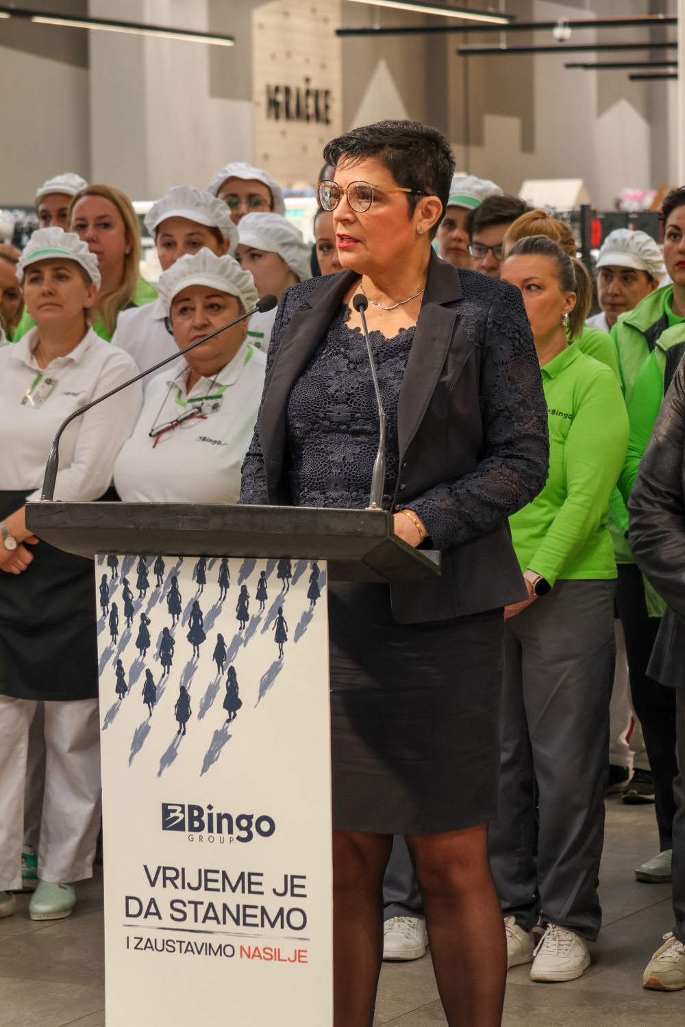 „Danas su stale sa radom sve Bingo trgovine – njih više od 230 – u cijeloj Bosni i Hercegovini. Stale su Dita, Pivara Tuzla, Ingram, Kaletex, Duka, naša fabrika tjestenine, fabrika papira, stala je i Bingo Farma – sve naše fabrike, farme i proizvodne kompanije koje posluju u okviru Bingo grupacije. Jer vrijeme je da stanemo i zaustavimo nasilje nad ženama.“ kazala je izvršna direktorica Binga Ljiljana Kunosić.