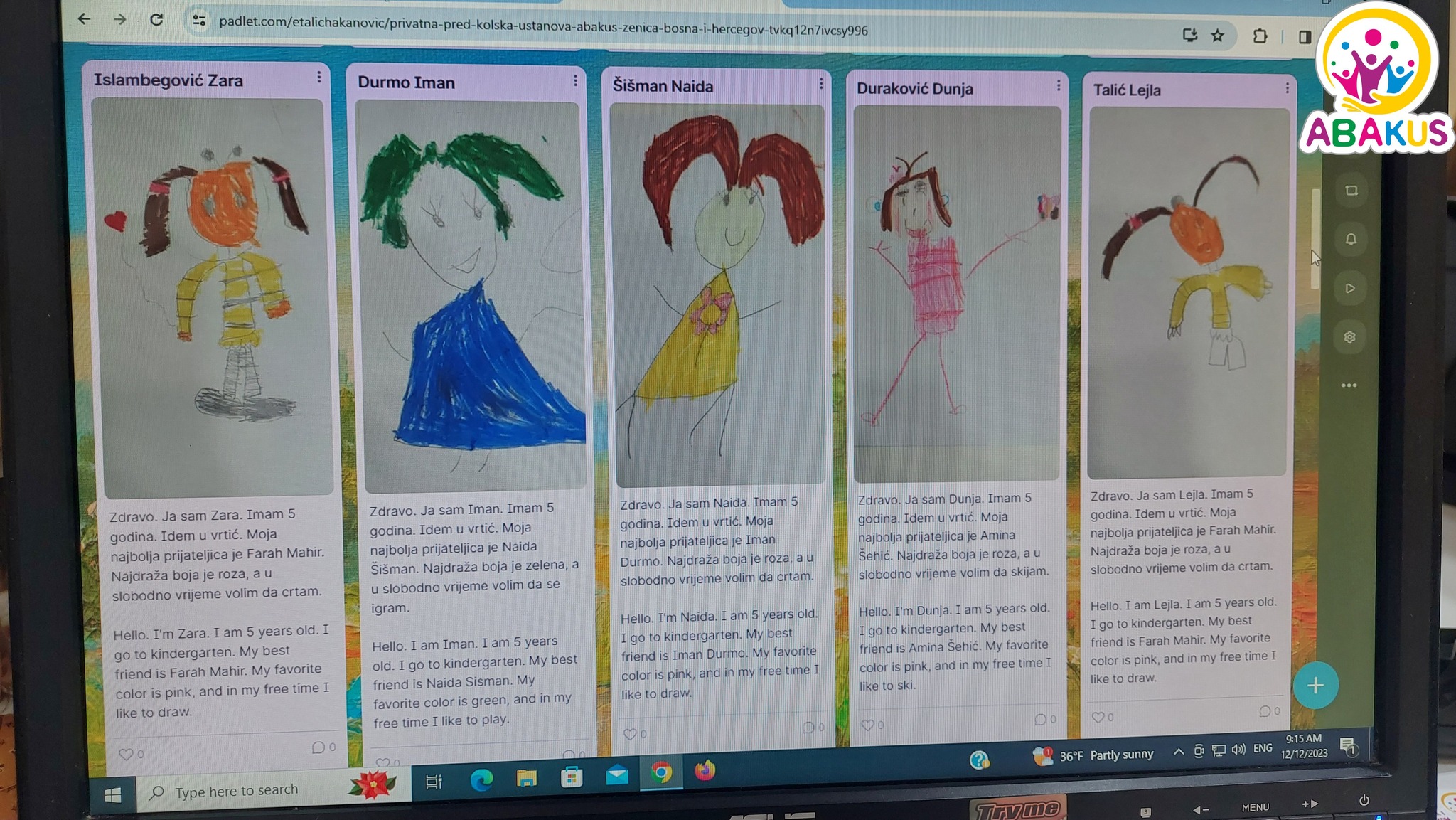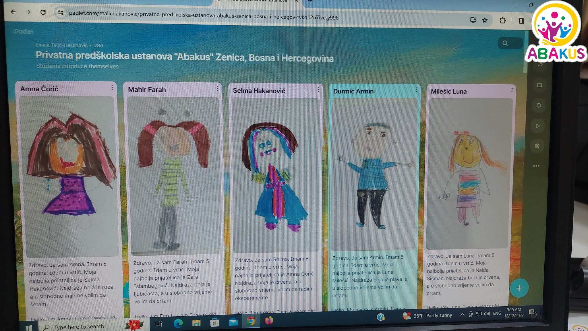 Vrtić „Abakus“ iz Zenice je dobitnik mnogobrojnih nagrada i priznanja za inovativan i kvalitetan rad, među kojima je i najprestižnije priznanje za edukatore u BiH – Najinovativnije odgajateljice Nagrade za inovativne nastavnike – COI Step by step.