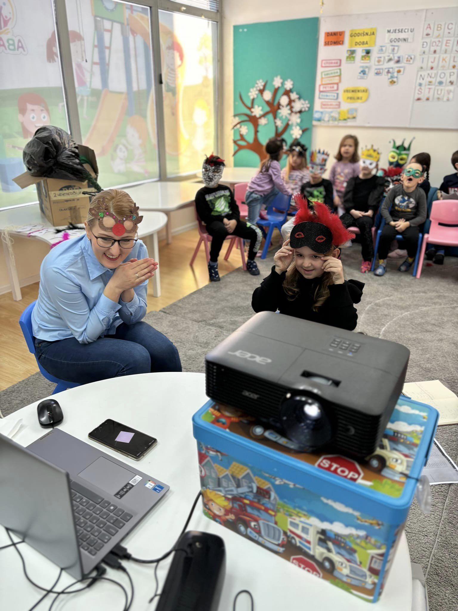 Rado smo se odazvali pozivu da učestvujemo i realizujemo međunarodni projekat „Čarolija ispod maske“ u kojem učestvuju inovativni nastavnici iz: BiH, Srbije, Turske, Grčke i Rumunije. U projektu su učestvovala djeca iz vrtića, osnovnih i srednjih škola, a svaka grupa je imala svog partnera, odnosno svako dijete je imalo svog para „Tajnog prijatelja“. Djeca su se predstavila crtežom, avatarom i tekstom kroz različite web alate. Organizirane su radionice izrade maski za prijatelje, posebne maske su pravili za sebe, a izrađena je saradnjom svih nastavnika i velika maska koja predstavlja logo projekta. Djeca su zaronila u svijet mašte i kreativnosti kako bi izradila vlastite maske koje odražavaju njihovu jedinstvenost. Ove maske nisu samo umjetnički izraz, već i simbol međunarodnog prijateljstva. Posebno emotivna tačka projekta bilo je izrađivanje dodatnih maski za djecu iz partnerskog vrtića u Kotor Varoši. Ovaj gest ljubaznosti dodatno je ojačao veze između naših malih umjetnika.