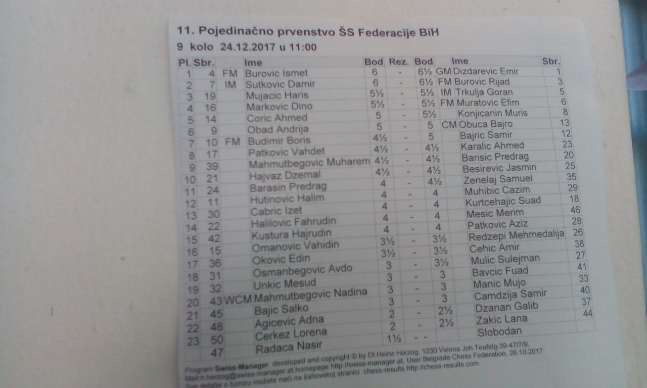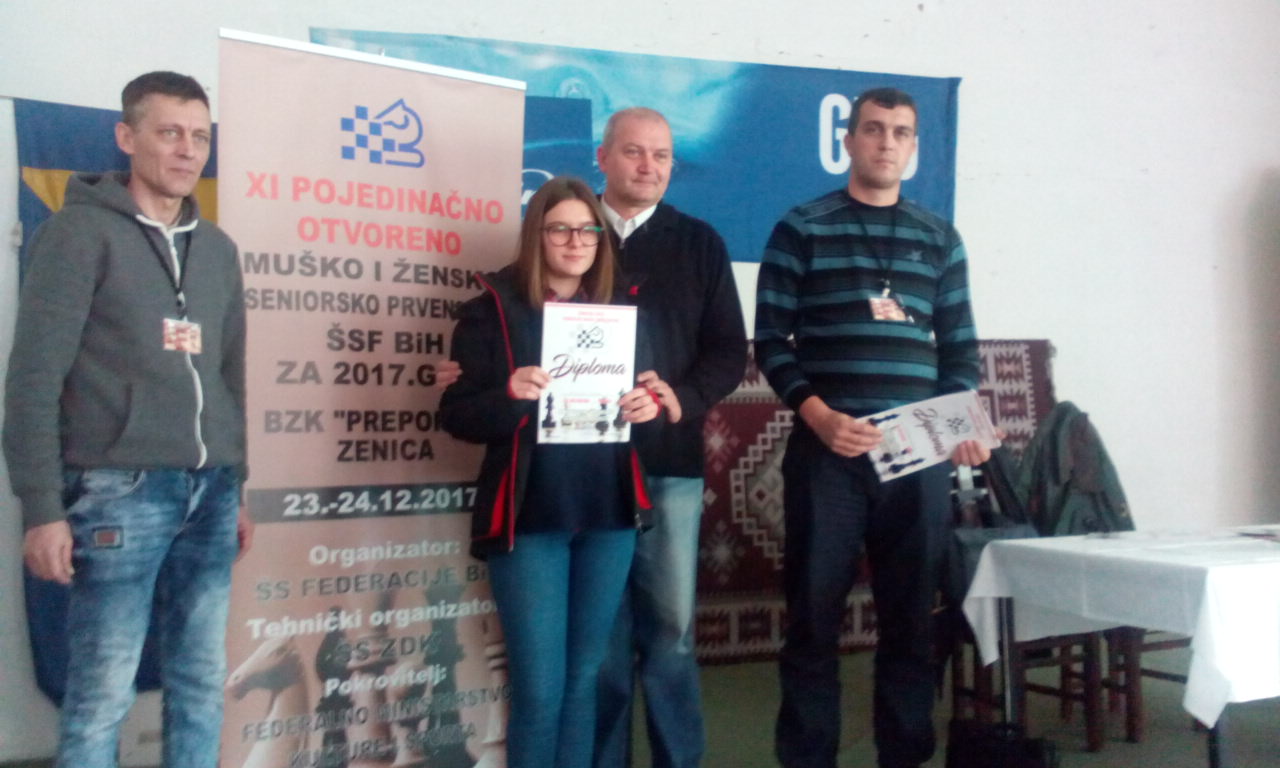 FOTO: Završeno 11.šahovsko prvenstvo ŠSFBiH – Prvaci Emir Dizdarević i Nadina Mahmutbegović – Nakon dvodnevnog takmičenja i uz učešče 50 takmičara danas 24.12.2017.godine u Zenici je završeno 11.otvoreno seniorsko pojedinačno prvenstvo (M-Ž) u šahu za 2017.godinu.
