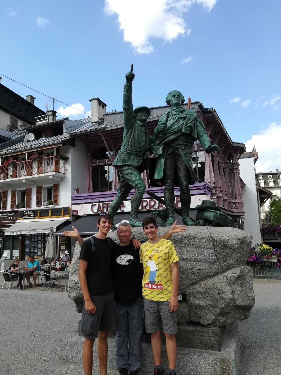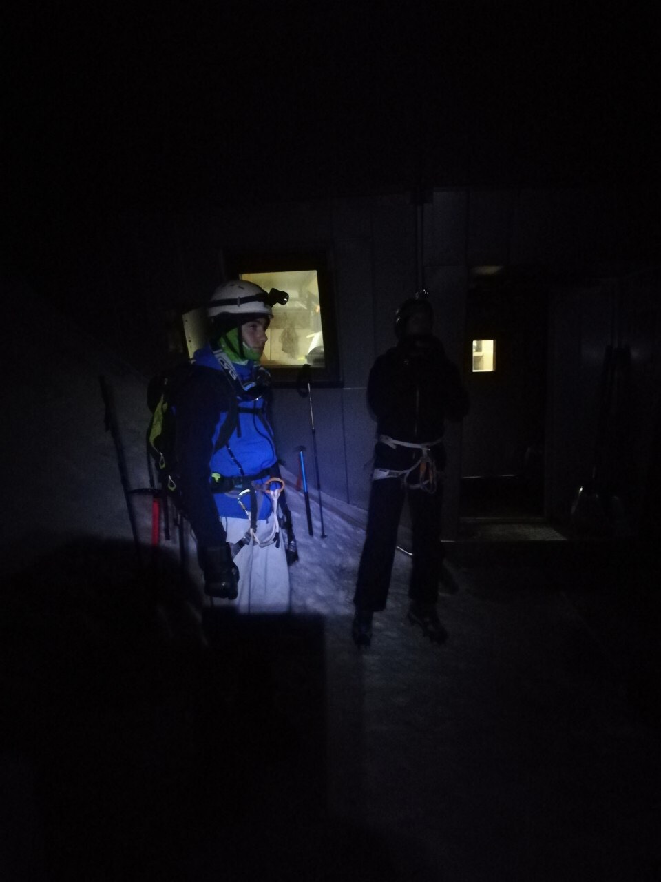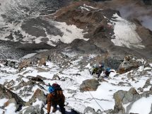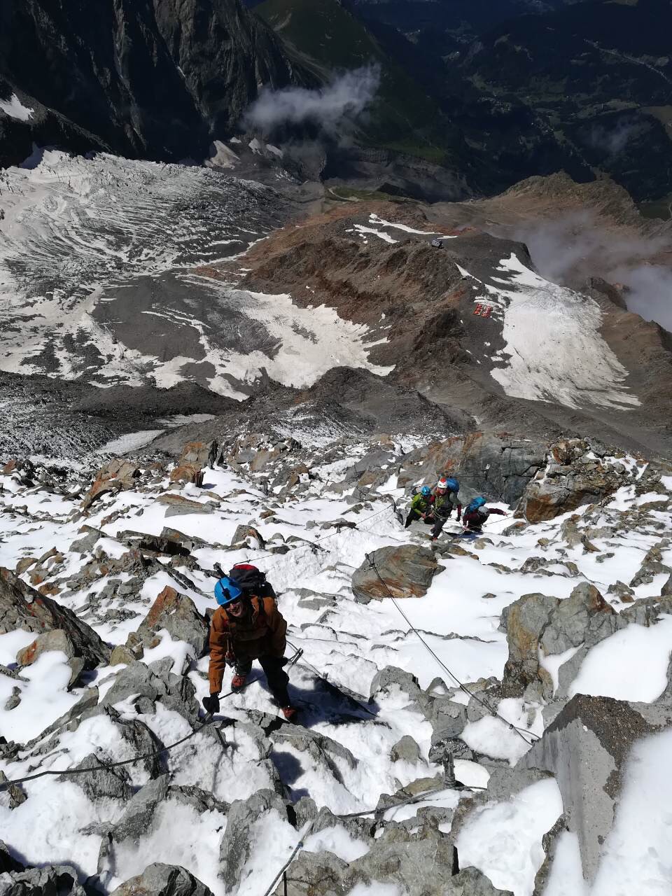 Prva duža pauza je na domu Tête Rousse na 3167 m. Alpinistička skoro vertikalna staza između dva doma prolazi kroz tzv. “Kuloar smrti” koji je prozvan tako zbog konstantnog odrona i opasnosti od kolizije sa odlomljenim stijenama. U dom Refuge du Goûter 3815 m su stigli u poslijepodnevnim satima gdje su prenočili.