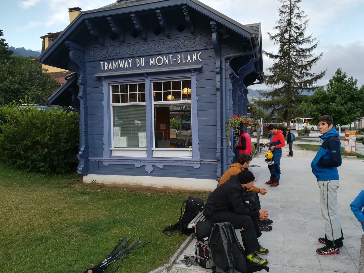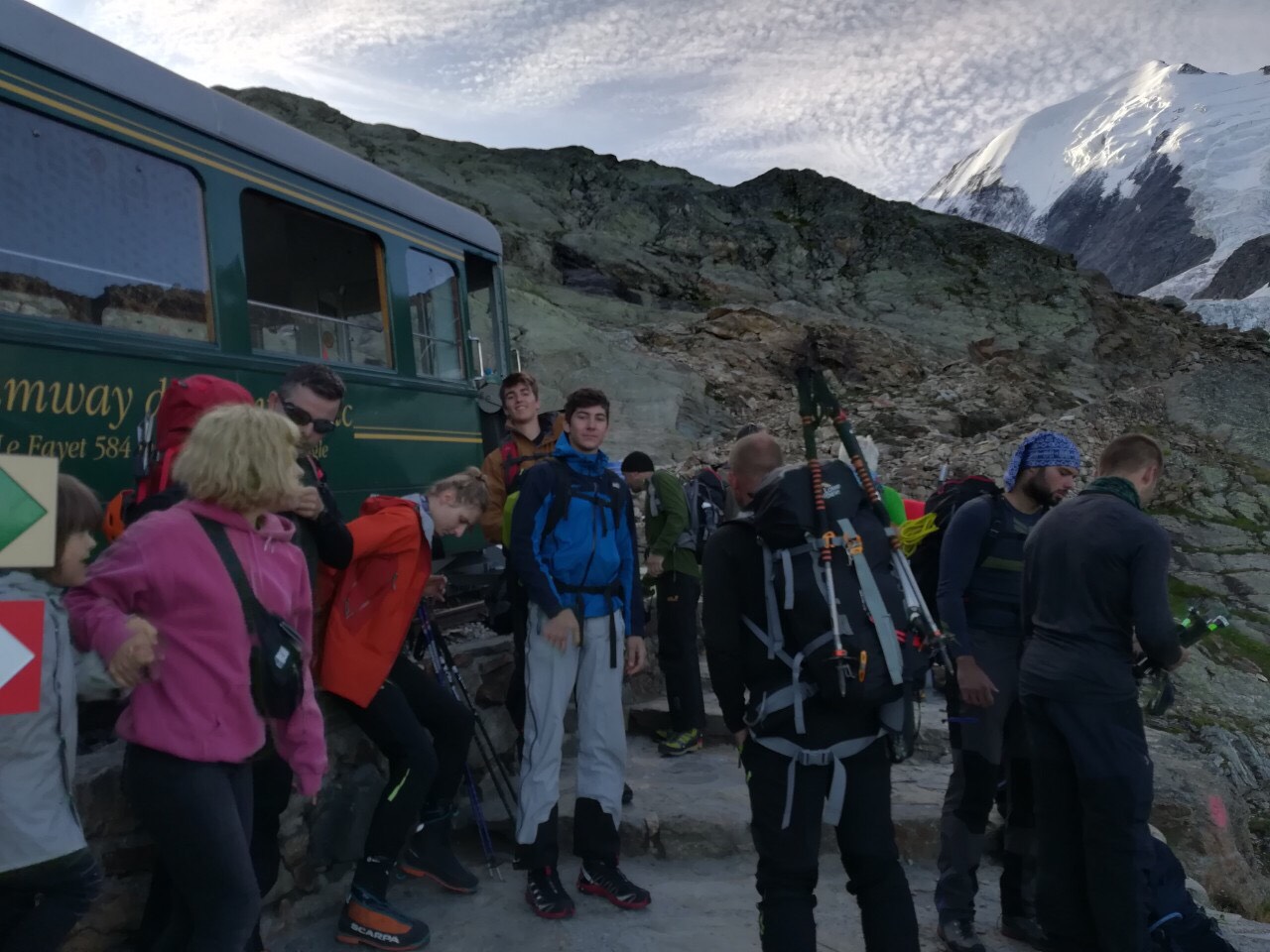 Pothvat započinje u Chamonixu u kampu gdje se čeka povoljna vremenska prognoza. Iz Le Fayeta su vozom – Tramway du Mont-Blanc došli do početne tačke uspona na 2372 m.