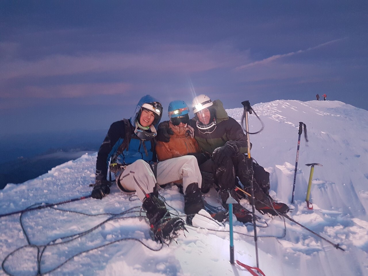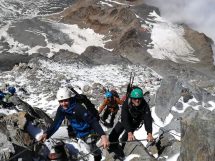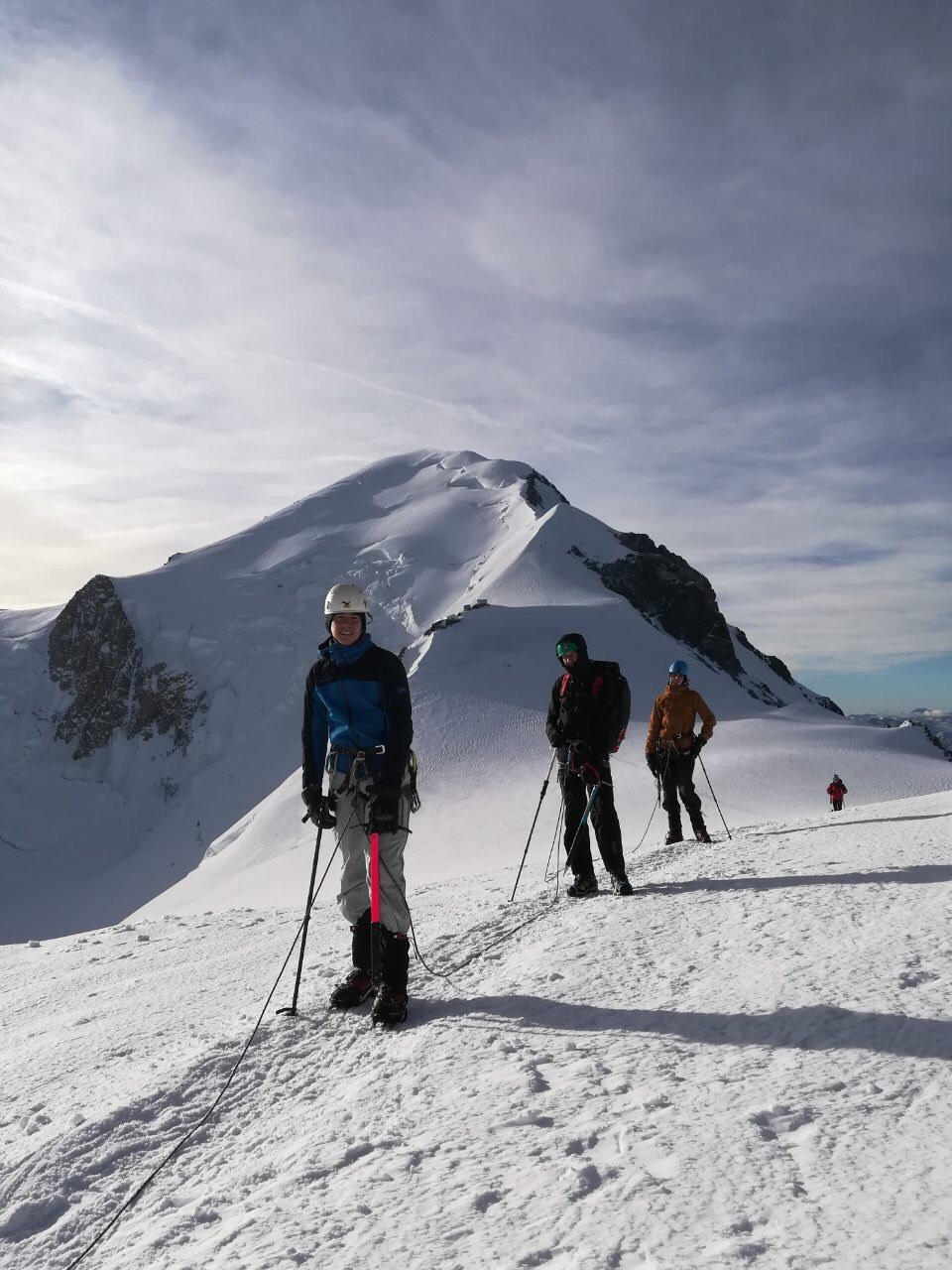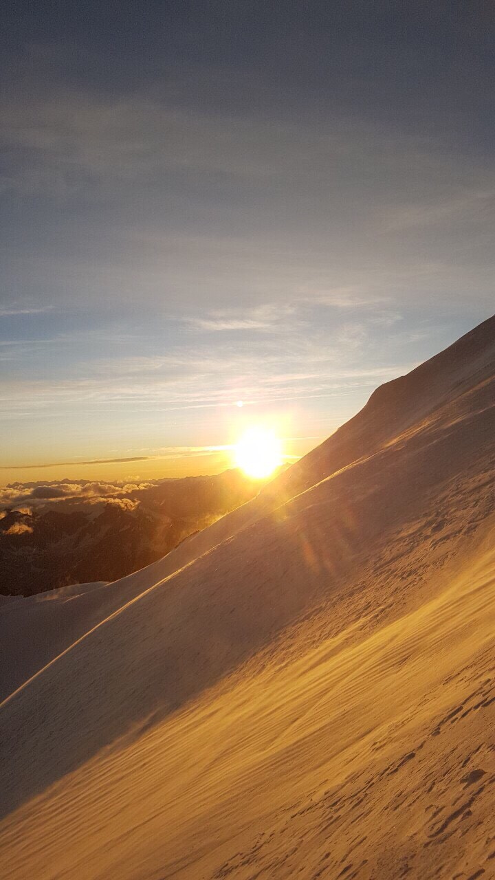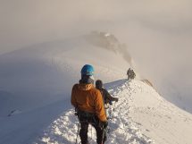 Uspon na vrh obično započinje u noćnim satima, te se tim oko 1 sat poslije ponoći pod svjetlom ceonih lampi zaputio prema vrhu zahtjevnom stazom nazvanom “Žilet” koja je pri temperaturi od oko -15 stepeni i udarima vjetra oko 50 km na sat uz opasnost propadanja u ambis na talijansku ili francusku stranu planine predstavljala veliki izazov. Penjanje je dodatno otežala i pojava simptoma visinske bolesti kod jednog člana tima. Vrh su dosegli u zoru oko 06.05 sati, gdje su uprkos snažnim naletima vjetra uspjeli zabilježiti par fotografija i pozdraviti izlazak sunca. Istim putem su se do večeri spustili u bazu gdje su proslavili uspon zajedno sa članovima makedonskog tima i dvojicom alpinista iz Sarajeva s kojima su se družili i tokom uspona.
